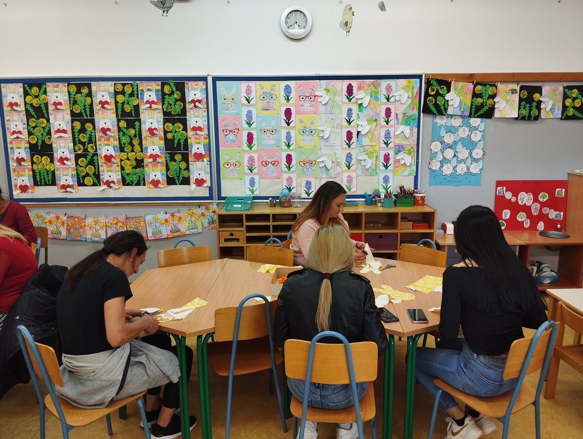 U srijedu (9.4.2025.) i četvrtak (10.4.2025.) održane su uskrsne radionice za roditelje djece predškolskih skupina "Točkice", "Zečići" i "Žirafice".