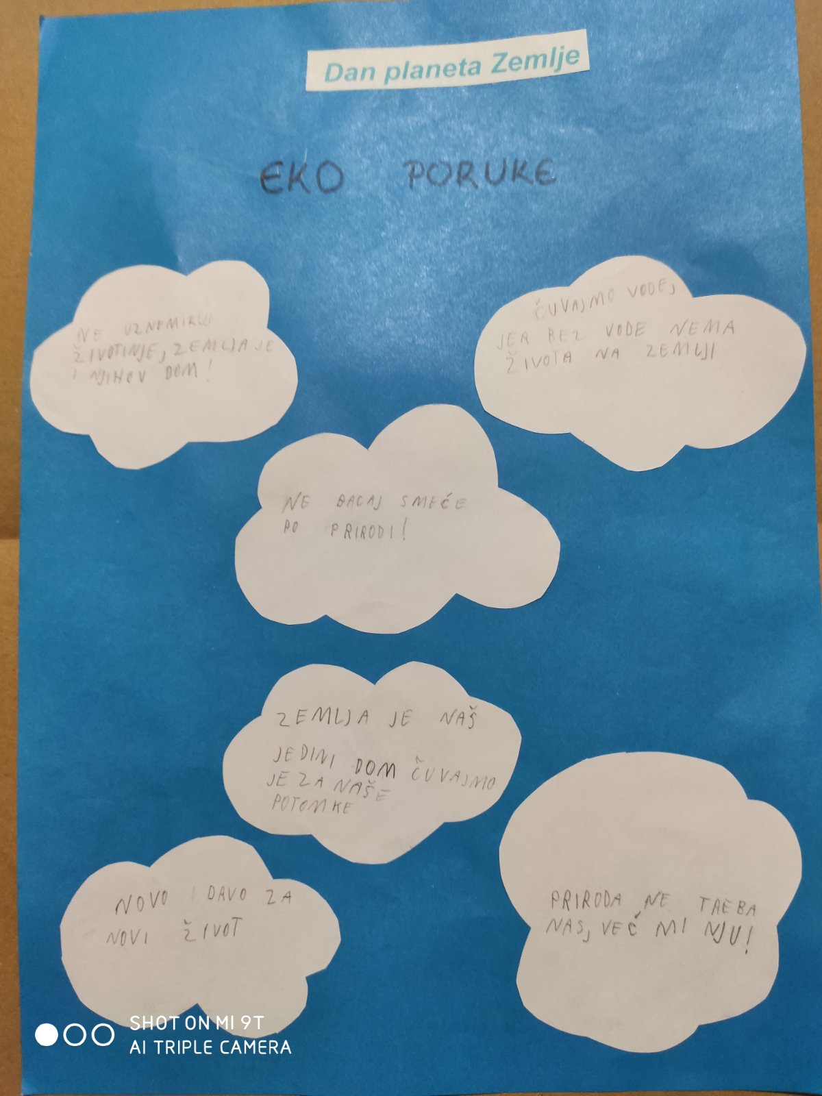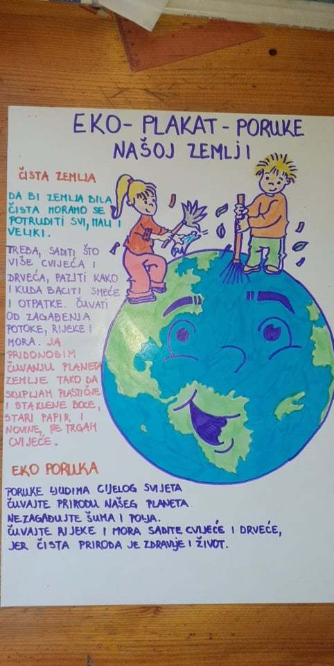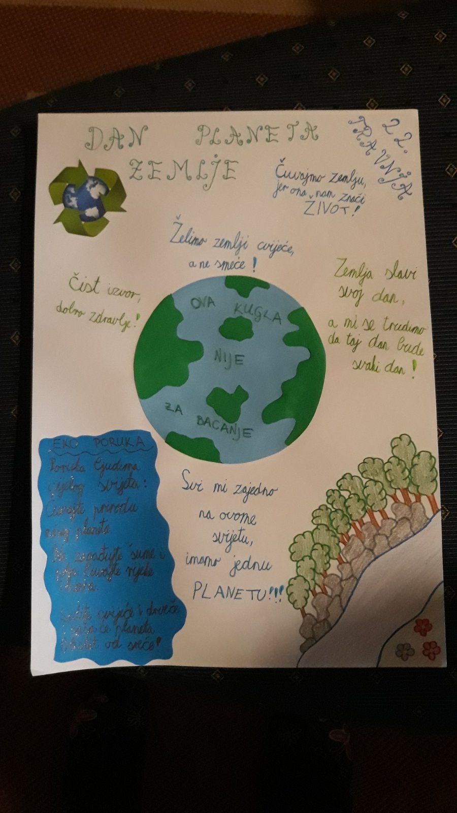 Da se ljubav prema prema Zemlji i pjesnički izriče, pokazala je Brigita Višnjić koja je upozorenje o zaštiti Zemlje stavila u stihove, dok je Noa Drvenkar opjevao ritam prirode koja se budi u proljeće. Učenici 1. b razreda pjesničko su umijeće pokazali u svojim prvim stihovima: uživljeni u živote životinja, odaslali su snažne poruke ljudima o zaštiti okoliša i Zemlje!