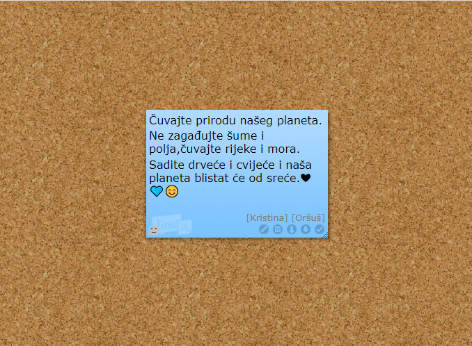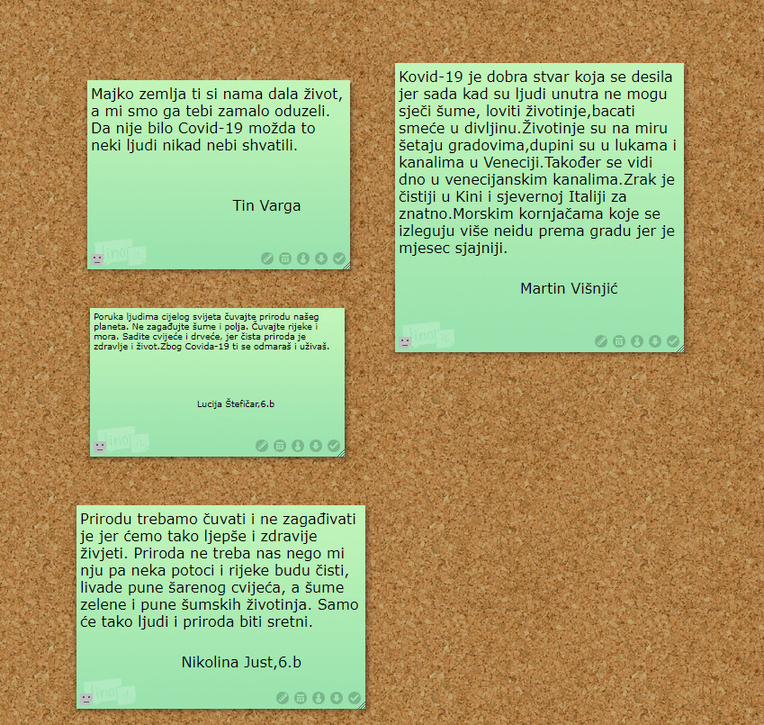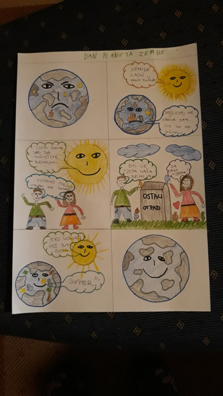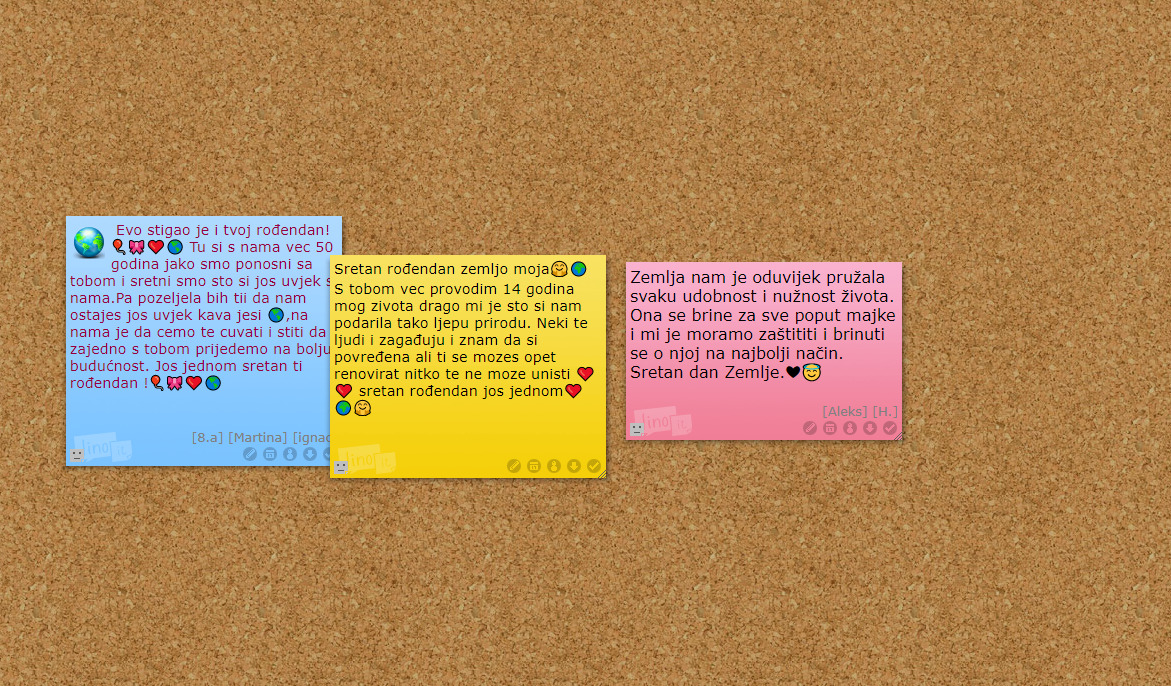 Učenici predmetne nastave čestitali su rođendan našoj Zemlji! Svoje su čestitke i ekološke poruke za Dan planeta Zemlje napisali i stavili na virtualni pano. Možete ih pročitati u galeriji slika, zajedno s preostalim radovima naših učenika!
