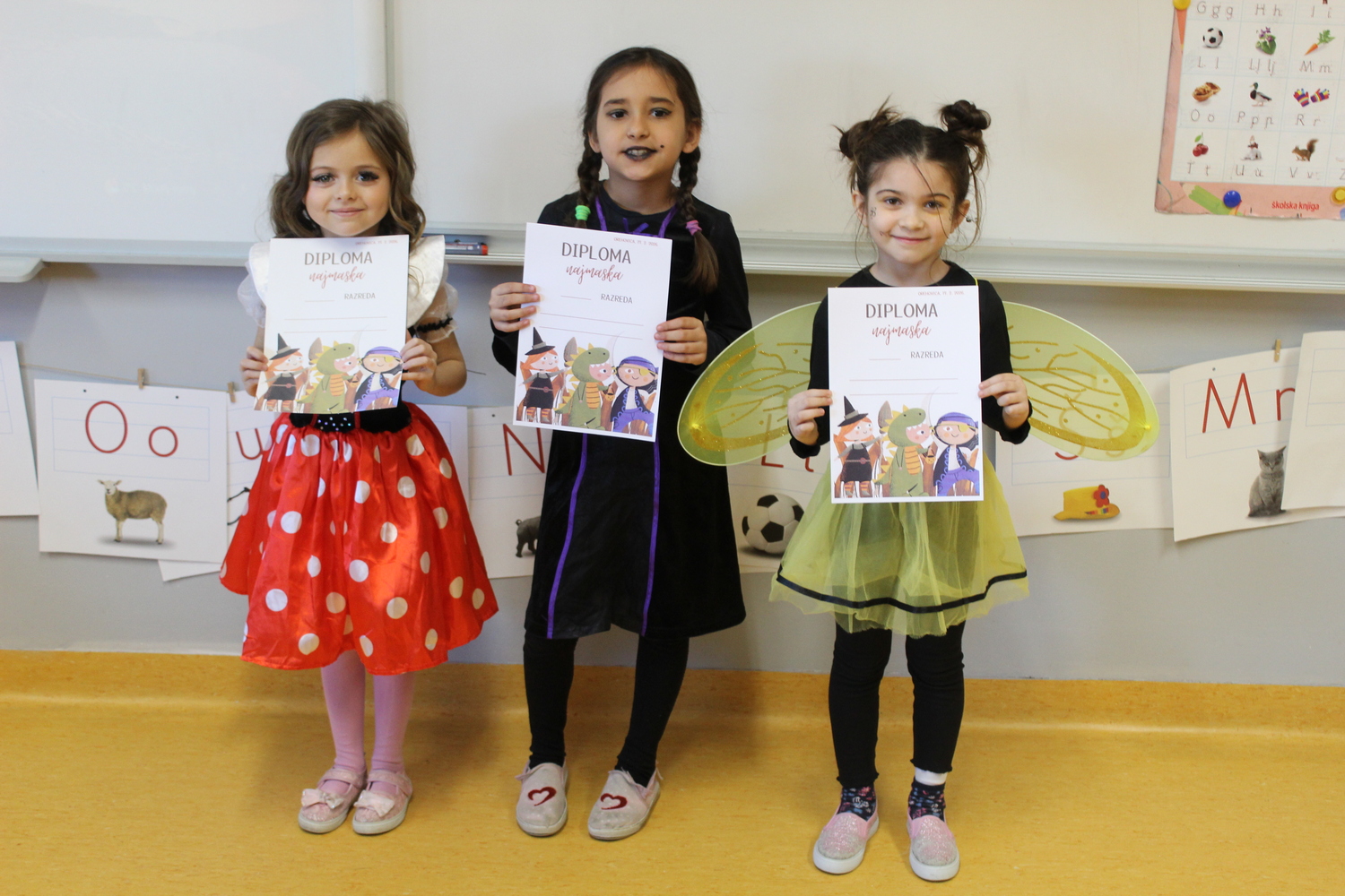 Školske su učionice ispunili šareni i zanimljivi kostimi, smijeh, ples i vesela atmosfera. Bilo je tu princeza, superheroja, klaunova, zombija, vještica, gusara, policajaca te još mnogo drugih likova koji su na jedan dan preuzeli vlast u školi. Svaki je razred birao razrednu najmasku. Sve su se maškare osladile bombonima i krafnama koje je osigurala škola.