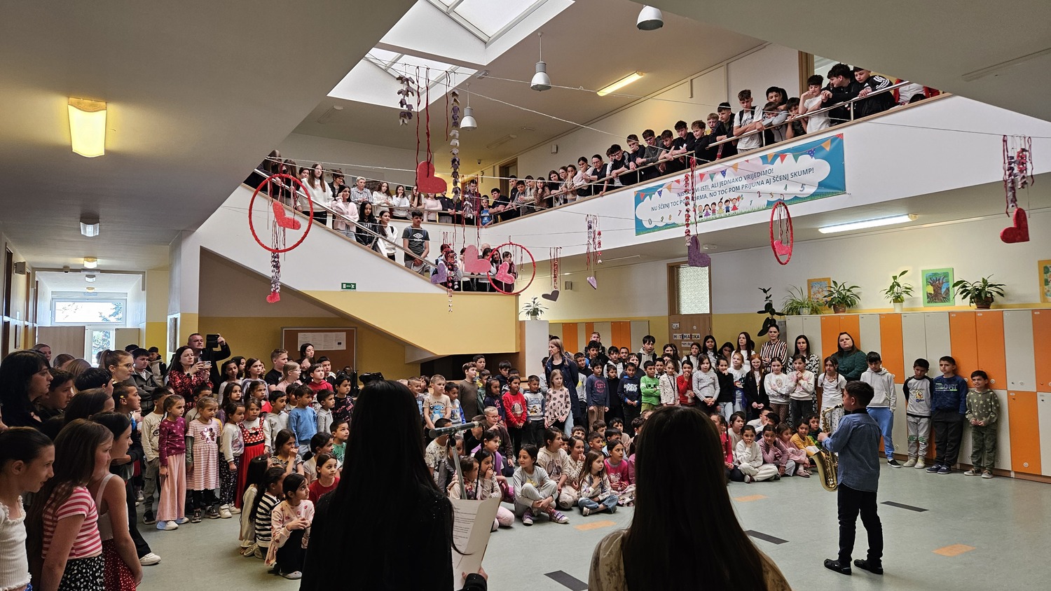 Priredbu je otvorio učenik 3.a razreda Lukas Horvat izvedbom pjesme „Đelem, Đelem“ na saksofonu te naši najmlađi polaznici, predškolci, s pjesmom „Fraci Marci“. Nakon njih, učenice petih razreda recitirale su pjesmu „Sreća“ na hrvatskom i romskom jeziku. Kako je život Roma neraskidivo povezan s glazbom, učenici 5. i 6. razreda odsvirali su i otpjevali skladbu „Romski život“. Zvukovi violine, bongo bubnjeva i kahona publiku su rasplesali i zabavili. Nakon ovih melodičnih taktova, učenice Josipa Balog i Julija Balog izrecitirale su pjesmu „Čarolija romskoga sna“, koju je napisala učenica Melisa Bogdanić iz 8.a razreda, na hrvatskom i na romskom jeziku. Kao poslastica na kraju, učenice Melisa Bogdanić i Marijana Oršuš pročitale su nam nagrađene radove kojima su postigle izvrstan uspjeh na jučerašnjoj Smotri literarnog stvaralaštva inojezičnih učenika.