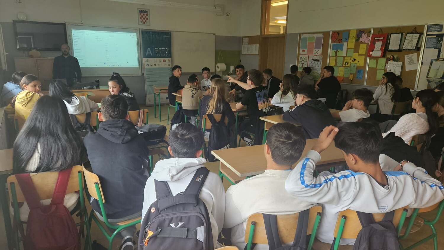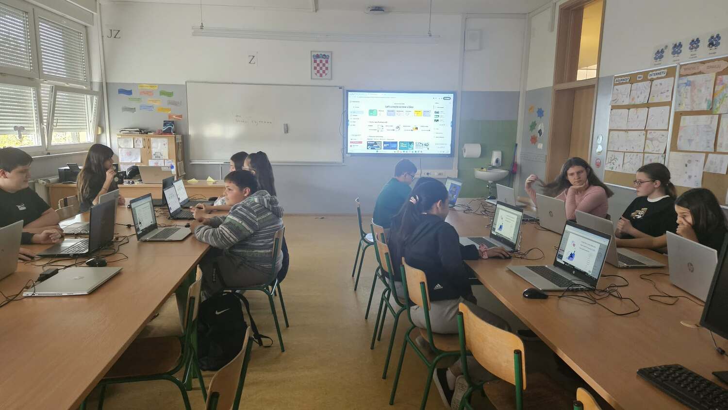 Učenici sedmih razreda sudjelovali su u radionici čija je tema bila „Umjetna inteligencija i njezina primjena u svakodnevnom životu“. Koristili su AI alate za kreativno izražavanje i učili kako umjetnu inteligenciju ispravno koristiti u svakodnevnim aktivnostima.