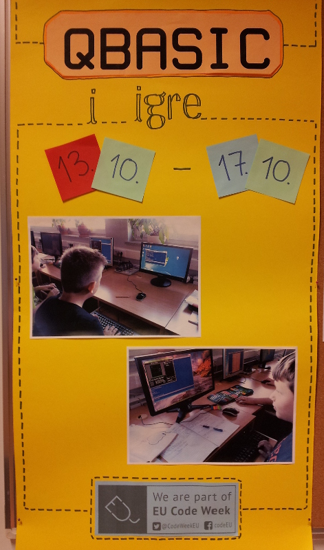 U okviru obilježavanja Europskog tjedna programiranja učenici su koristili QBASIC kao alat za programiranje jednostavnih igara, a usput su spoznali važnost programiranja i njegovo mjesto među zanimanjima budućnosti.