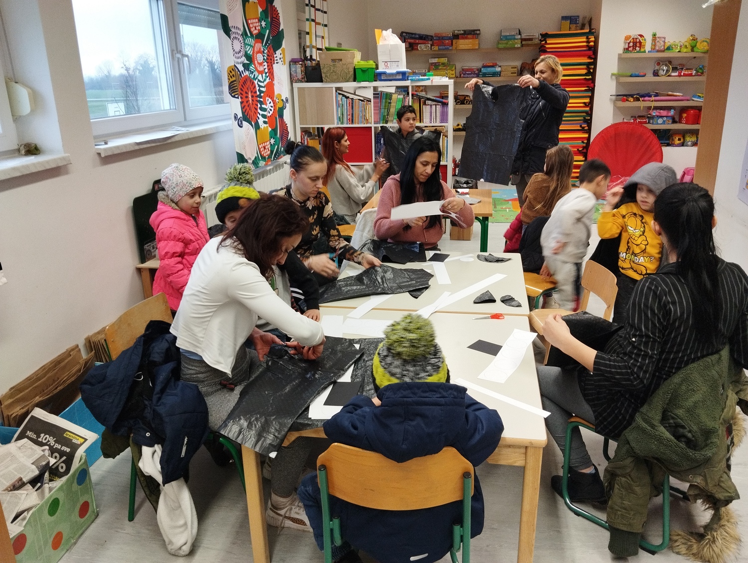 U izradi su im se pridružila i djeca, pa je uz pomoć papira, škara, ljepila i vreća vrlo brzo nastao kostim u kojem će mališani prošetati ulicama Orehovice na fašnik.