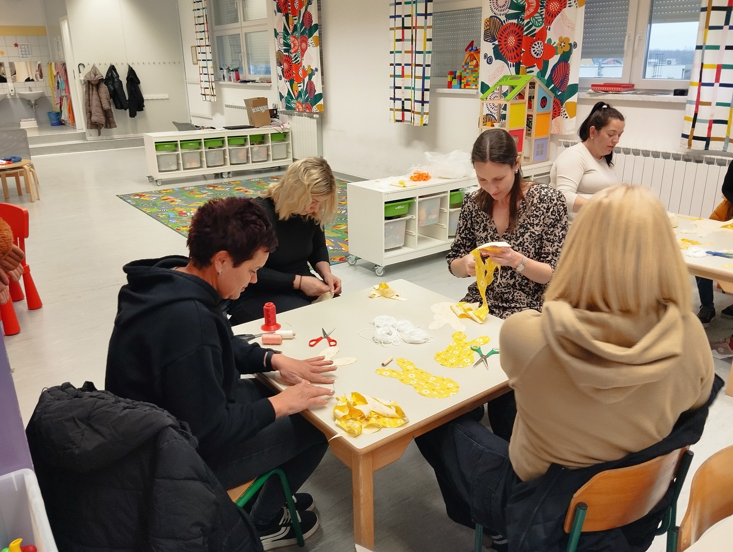 U četvrtak, 26. ožujka 2026., roditelji predškolskih skupina „Ježići“, „Pandice“ i „Leptirići“ sudjelovali su u radionici izrade uskrsnog zečića od platna.