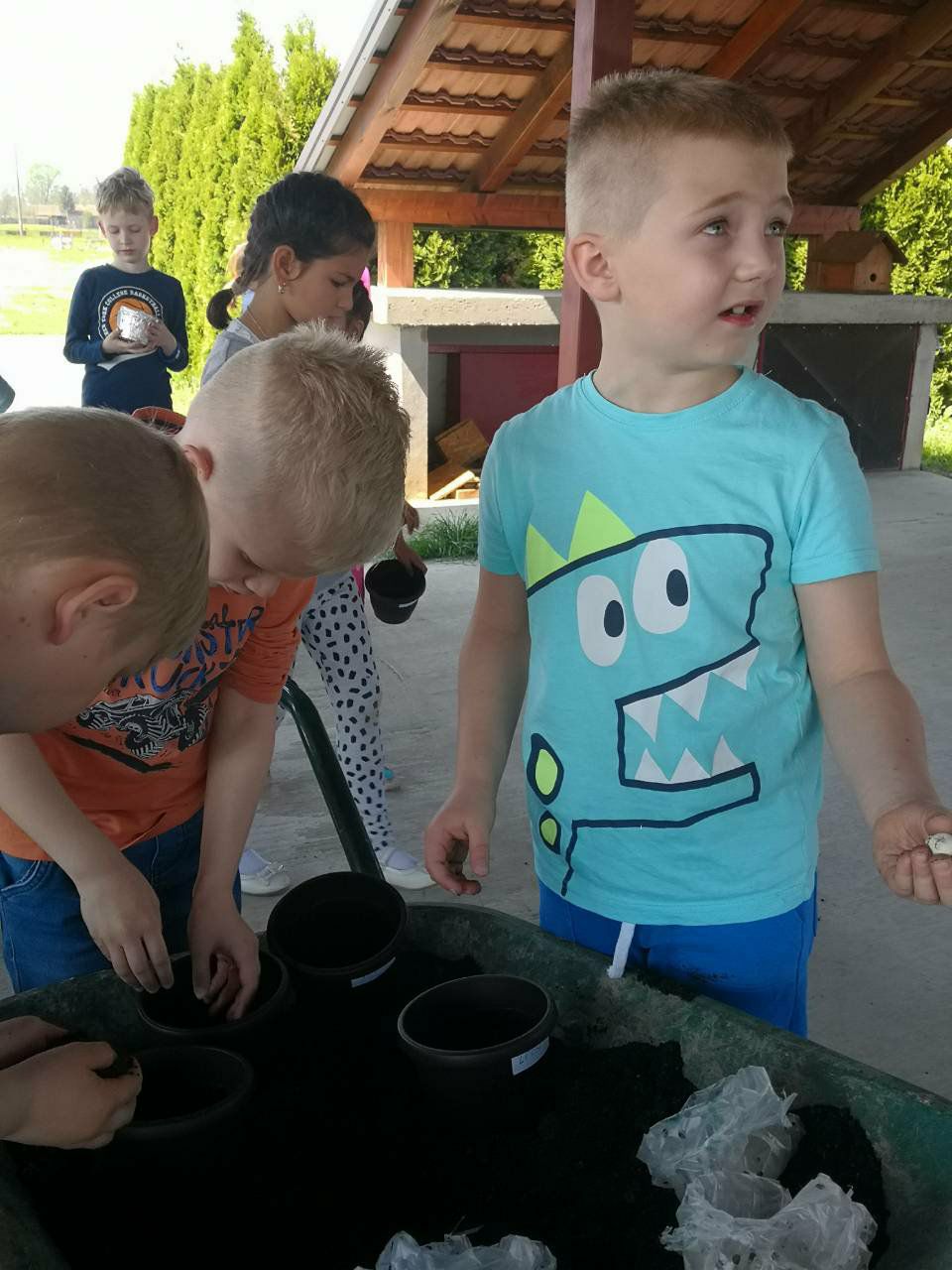 Dan planeta Zemlje obilježile su i predškolske skupine „Bubamare“, „Lavići“, „Sunčeka“ i „Zvjezdice“ sa svojim odgojiteljicama. Nakon čitanja slikovnica, proučavanja enciklopedija i razgovora s djecom, nastojale smo im pobliže predočiti koliko je važan taj dan, ne samo za nas, nego i za naš okoliš. Jedna od upečatljivijih aktivnosti bila je sadnja cvijeća koja se odvijala u sjenici tik do dječjeg igrališta. Djeca su s velikim oduševljenjem sadila lukovice cvijeća pri čemu je svako dijete imalo svoju teglicu. Stavljajući lukovice u zemlju, prekrivajući ih zemljom i zalijevanjem, djeca su i kroz razgovor spoznala koji su uvjeti potrebni za pravilan rast i razvoj biljke. Uz tu spoznaju, također ćemo pratiti i paziti na naše cvijeće, da dobije sve što je potrebno kako bi napredovalo. Cilj ove aktivnosti je da djeca postupno spoznaju da ljudi nisu iznad niti izvan prirode, već su sastavni dio nje, te da djeca shvate da svi dijelimo zajedničku odgovornost za brigu i očuvanje našeg dragocjenog planeta. Time se aktivno utječe na razvoj socijalne i građanske kompetencije djece, jedne od temeljnih kompetencija za cjeloživotno učenje.