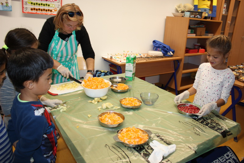 Premda su se neki od naših učenika prvi put susreli s poslovima vezanim uz izradu voćne salate, peciva i kolača, svi su se odlično snašli i pritom dobro zabavili, a na kraju i fino najeli.