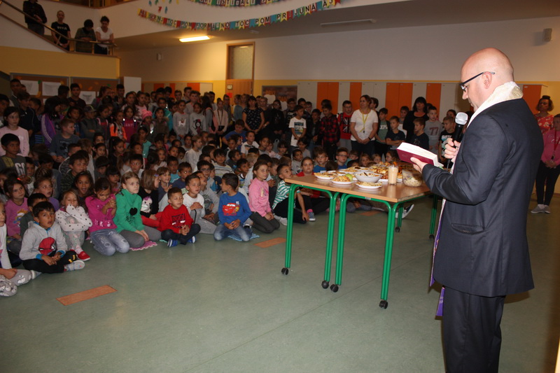 Vlč. Damir Slamek nam se pridružio na kraju projektnog dana te blagoslovio nas i naše "kulinarske majstorije".