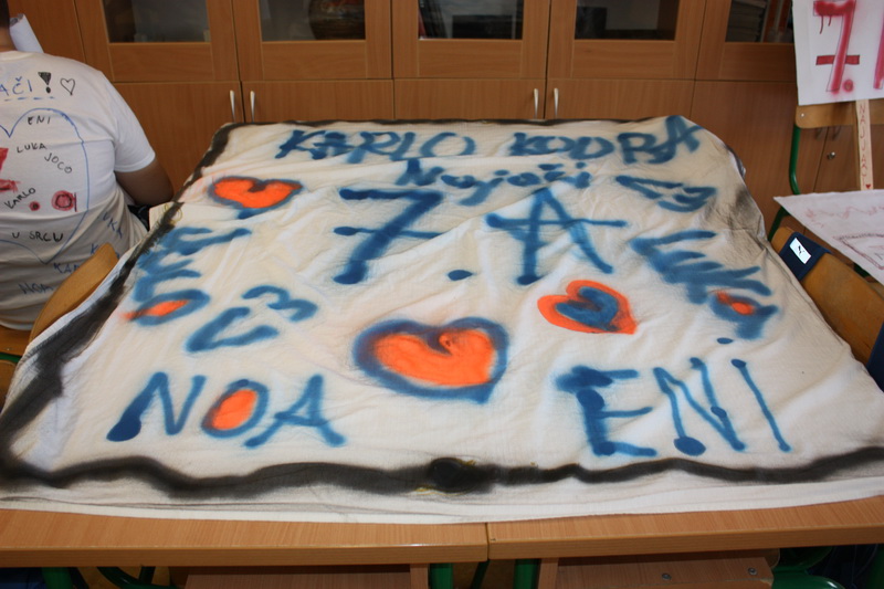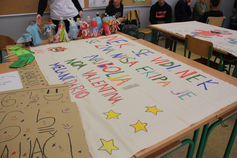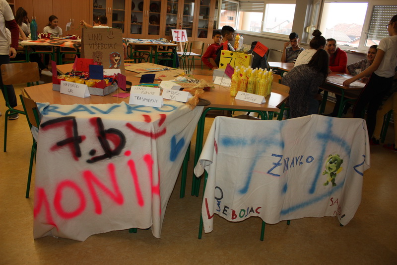 Budući da je jedna od natjecateljskih kategorija nagrađivanje najboljeg transparenta, spojili smo natjecanje s jednom od aktivnosti projekta "I smetje vredi". Učenici predmetne nastave tom su se prilikom natjecali u izradi navijačkih transparenata i rekvizita od prethodno prikupljenih otpadnih materijala. Učenici su marljivo radili i pokazali kreativnost pa prosudbena komisija, koju su sačinjavali općinski načelnik Franjo Bukal, učiteljica likovne kulture Sandra Pokos, defektologinja Irena Mekovec Kolarić i psiholog Krešimir Polgar, nije imala lak posao. Nakon detaljnog pregledavanja radova, donijeli su sljedeće odluke: prvo mjesto osvojili su učenici 7.b razreda, drugo mjesto učenici 6.b razreda, a 3 mjesto učenici 8.a razreda. Pobjednički razredi su osvojili vrijedne nagrade koje su osigurane sredstvima projekta. Prva nagrada je Lego robotika: Lego education EV3 core set, druga nagrada FujiFilm Instax Mini 90 Neo classic i treća nagrada Grafički tablet WACOM, Intuos Pen S.