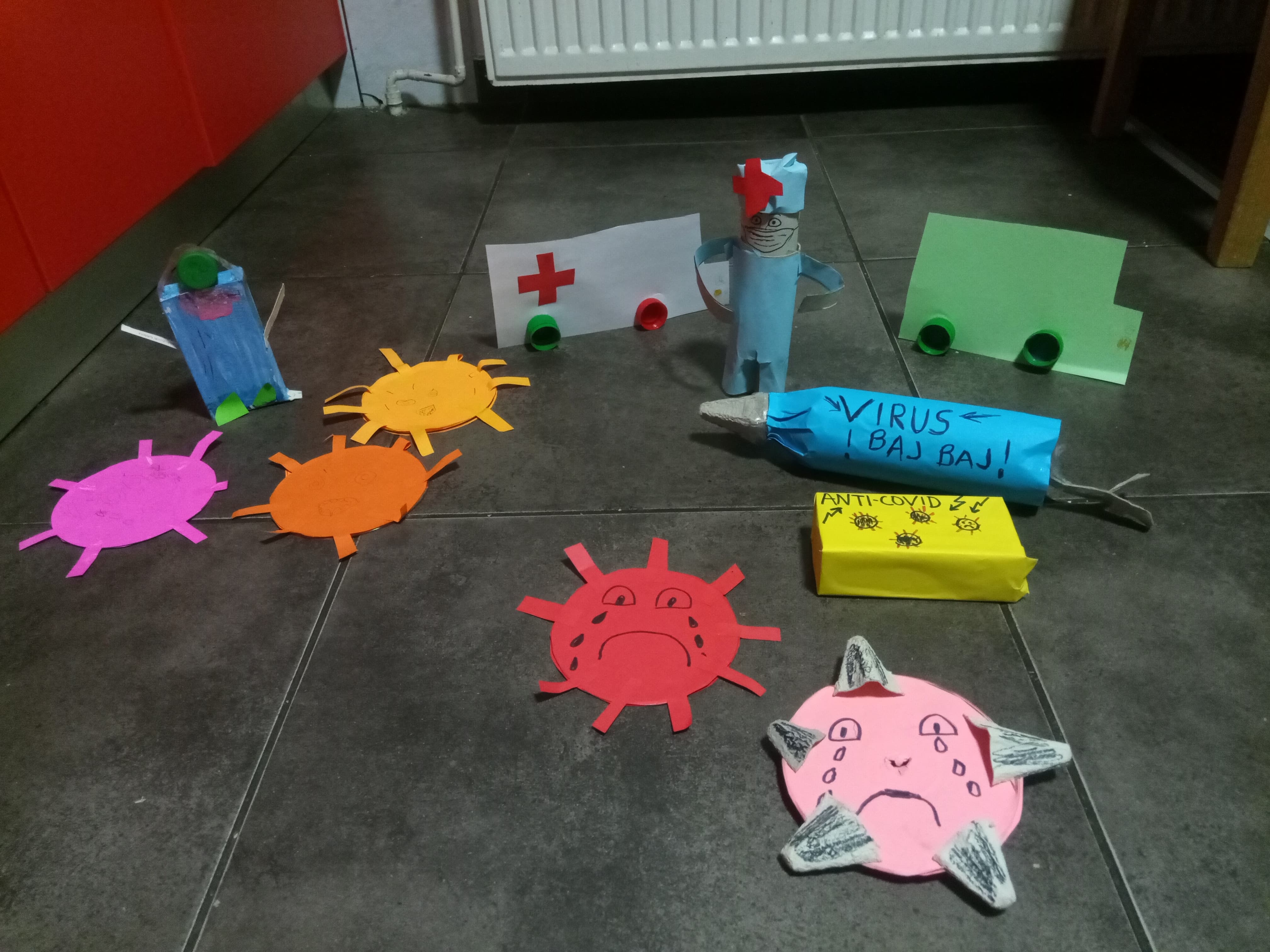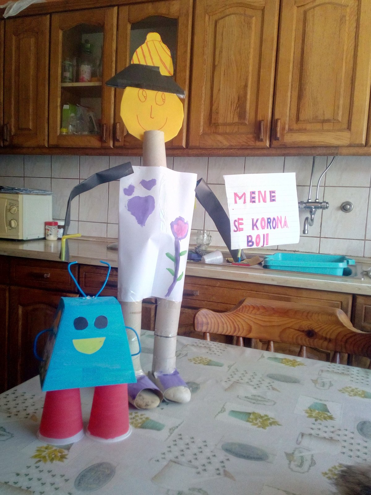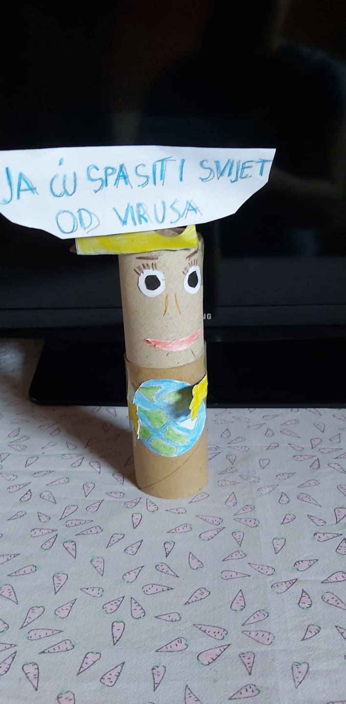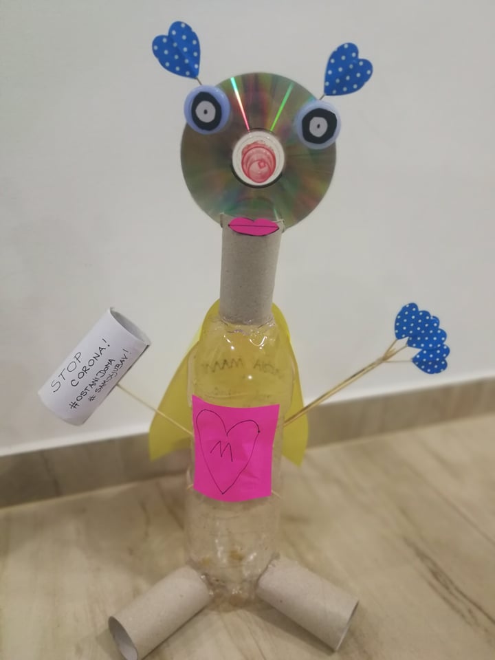 Malim dijelom svojih uradaka žele svima uljepšati ove dane, izmamiti osmijeh na lice. U svom su domu tako stvorili malo kazalište (pa i kazalište sjena) i odigrali nam igrokaz Proljetno buđenje. Kako su oni sami junaci, koji se bore protiv virusa tako da ostaju doma, trebalo im je i pojačanje – super junak, koji će spasiti svijet. Njega su izradili recikliranjem različitog materijala kojeg su našli u kući. Svima nam poručuju: Dok je takvih junaka kao što smo mi, nemate se čega bojati!