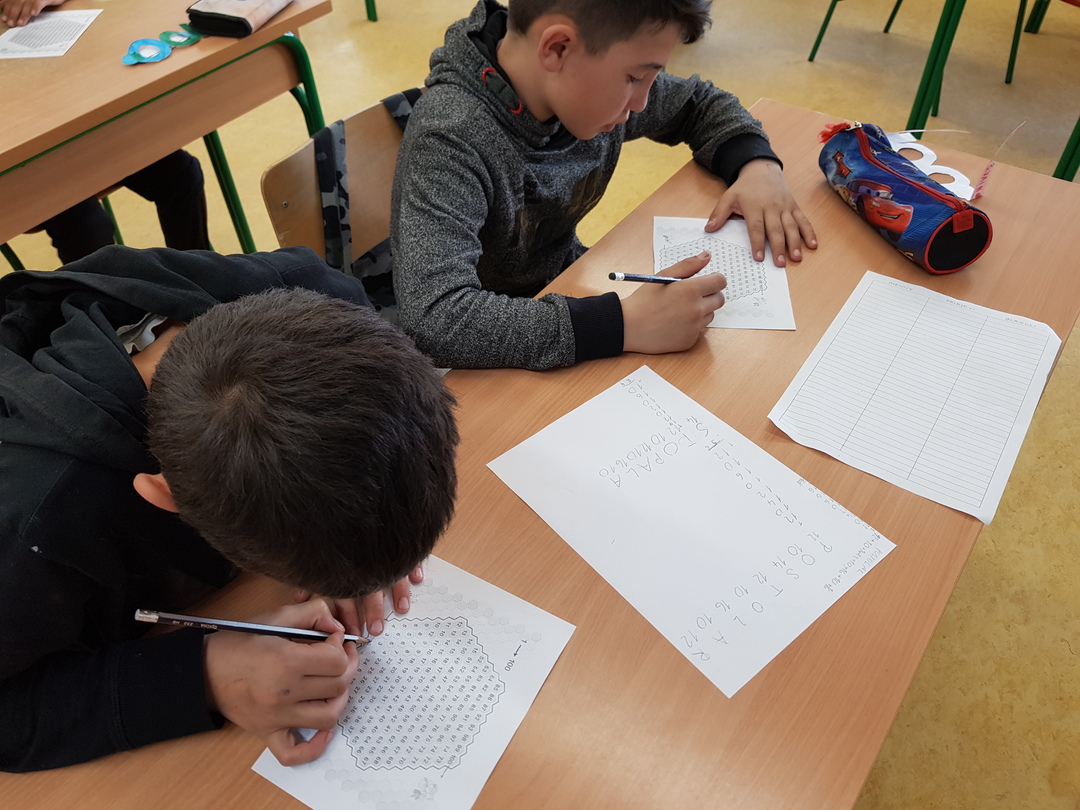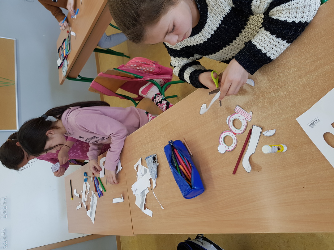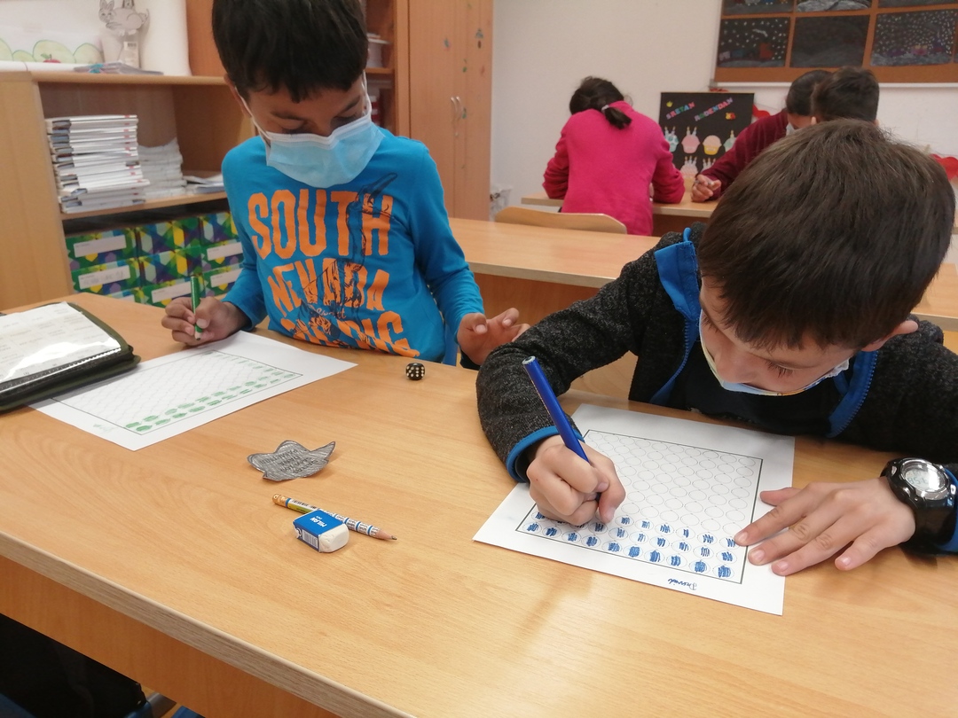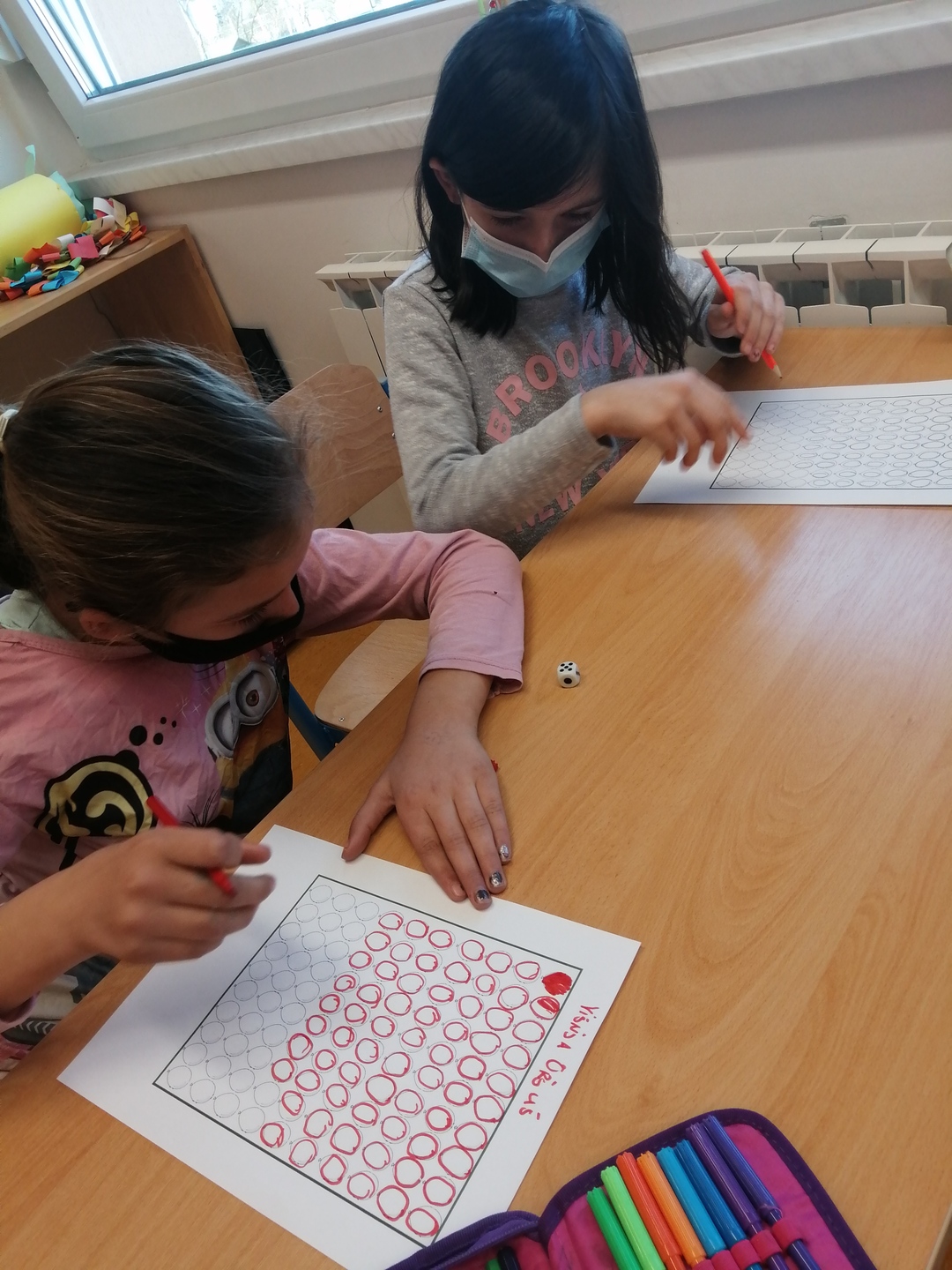 Učenici prvog razreda slušajući upute crtali su čudovište sa stotinu različitih dijelova tijela. Nakon toga bacajući kocku putovali su tračnicama do cilja, do broja 100, rješavali osmosmjerke, igrali memori s riječima i sličicama koje u svom nazivu imaju riječ sto, pisali svoje ime u 100 sekundi.
