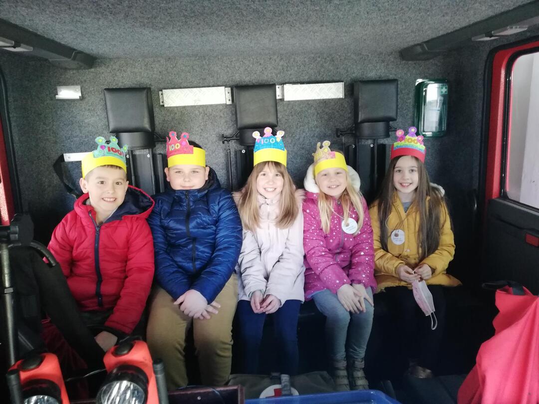 Za to vrijeme učenici drugog razreda posjetili su obližnje vatrogasce DVD-a Podbrest. Vidjeli su više od stotinu različitih dijelova vatrogasne opreme. Pokušali su i sami pogoditi metu mlazom vode kao pravi mali vatrogasci. Vrativši se u školu pisali su što bi sve oni mogli, željeli, voljeli ili ne voljeli, što im je teško ili zabavno a vezano je uz broj 100. Crtali su se kako izgledaju sada i kako će izgledati sa sto godina.