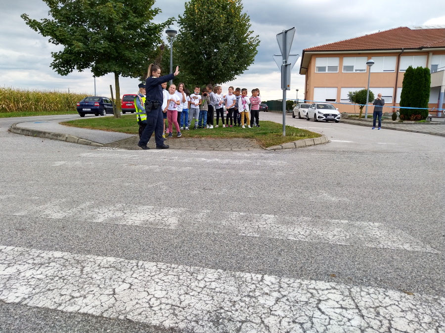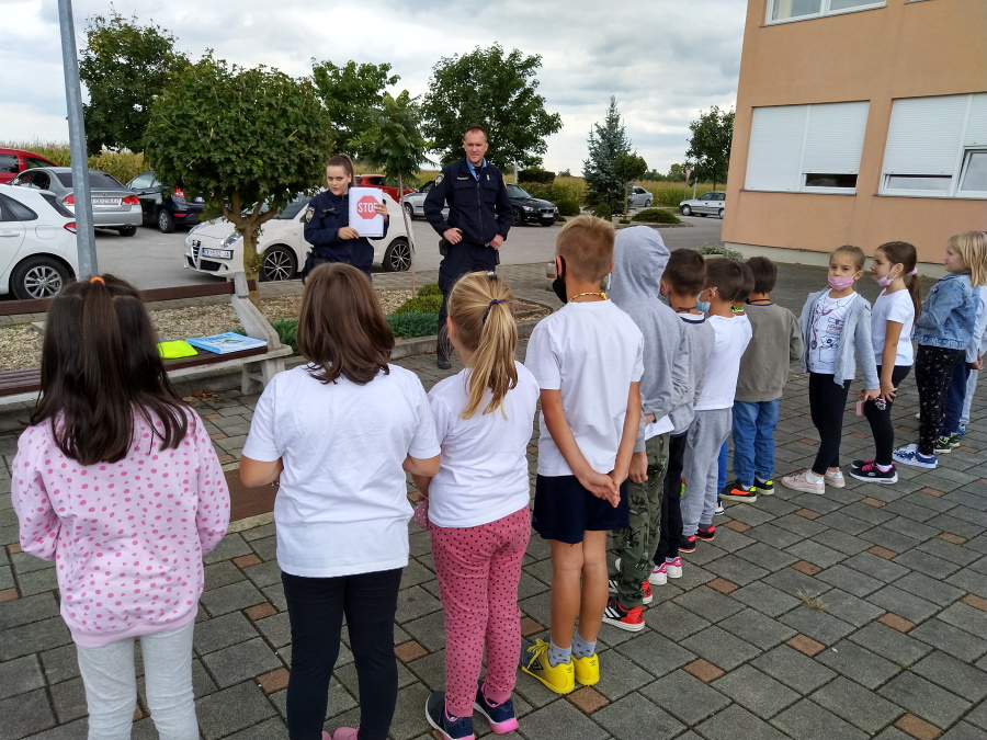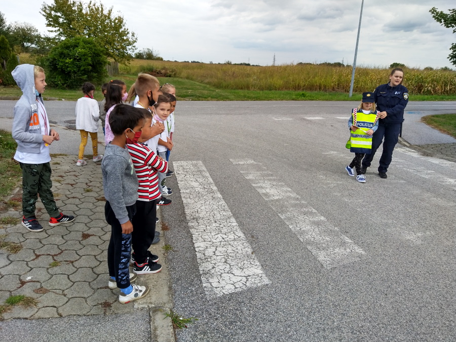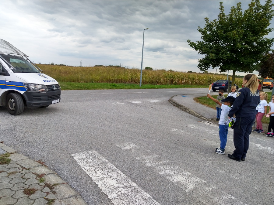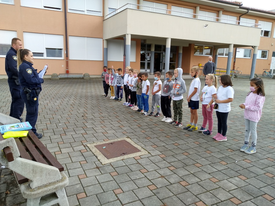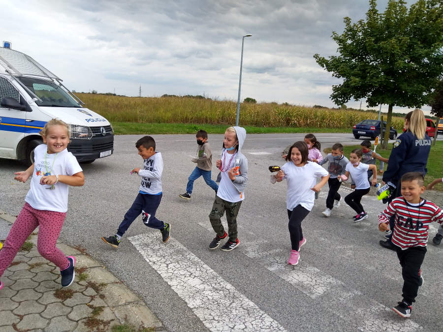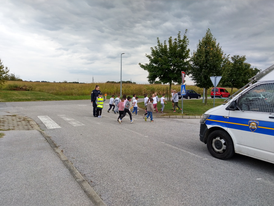 Naši su prvašići i ove godine sudjelovali u edukaciji "Sigurno u prometu". Pripadnici interventne jedinice PU međimurske su im objasnili i pokazali kako sigurno prelaziti cestu te ih upoznali s prometnim znakovima i pravilima.