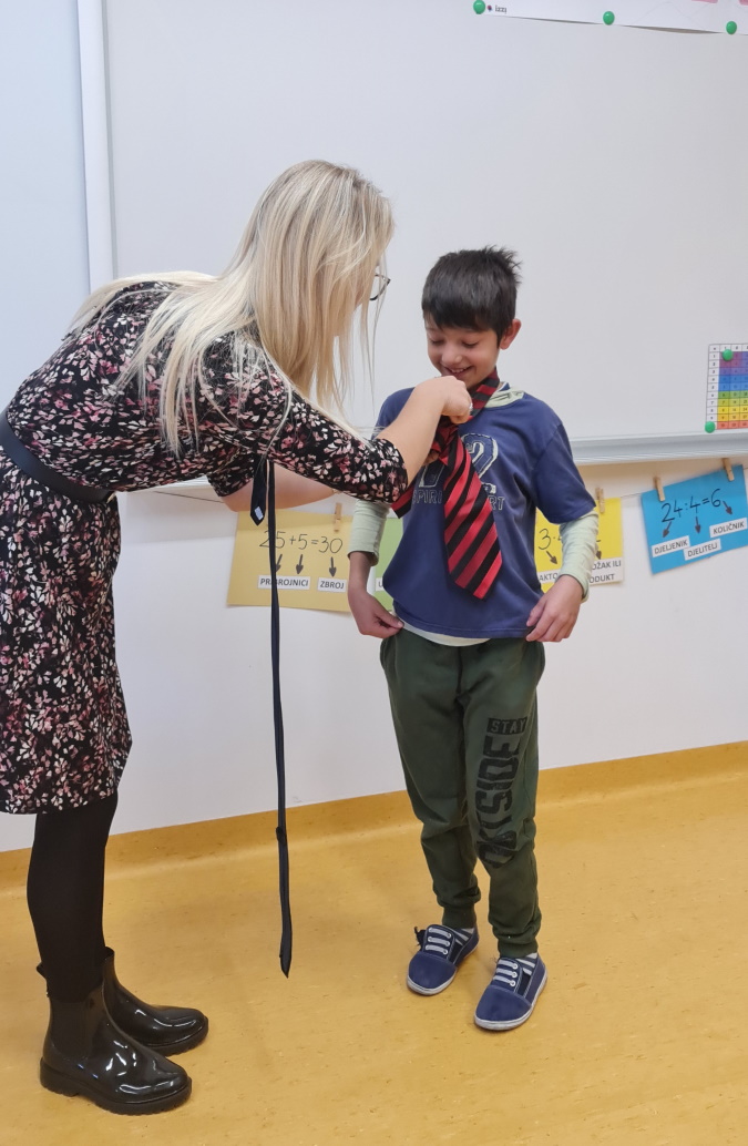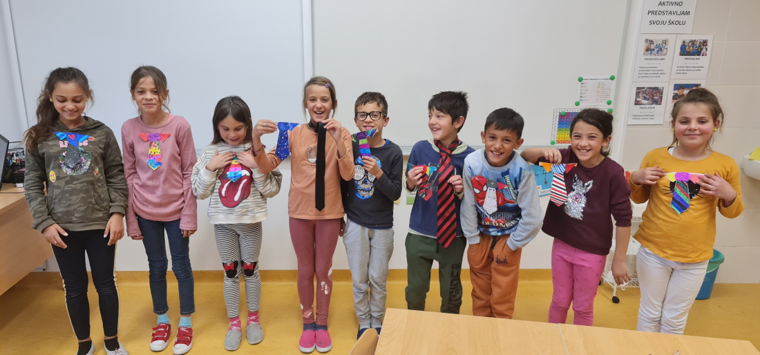 I učenici 3.a razreda su na produženom boravku obilježili Dan kravate dizajnirajući svoju kravatu, a posebno ih je oduševilo vezanje iste u čemu su svi bili vrlo uspješni.