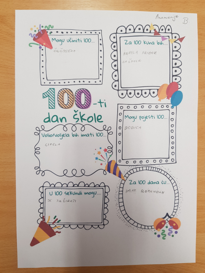 Zabavili smo se i uz vesele aktivnosti za 100. dan škole. A za kraj dana, na satu TZK-a, odvježbali smo 10 puta po 10 različitih vježbi.