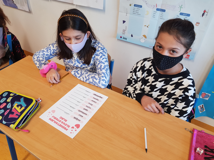 U paru su se natjecali, tko će prije, od pomiješanih slova, složiti riječi vezane uz Valentinovo.