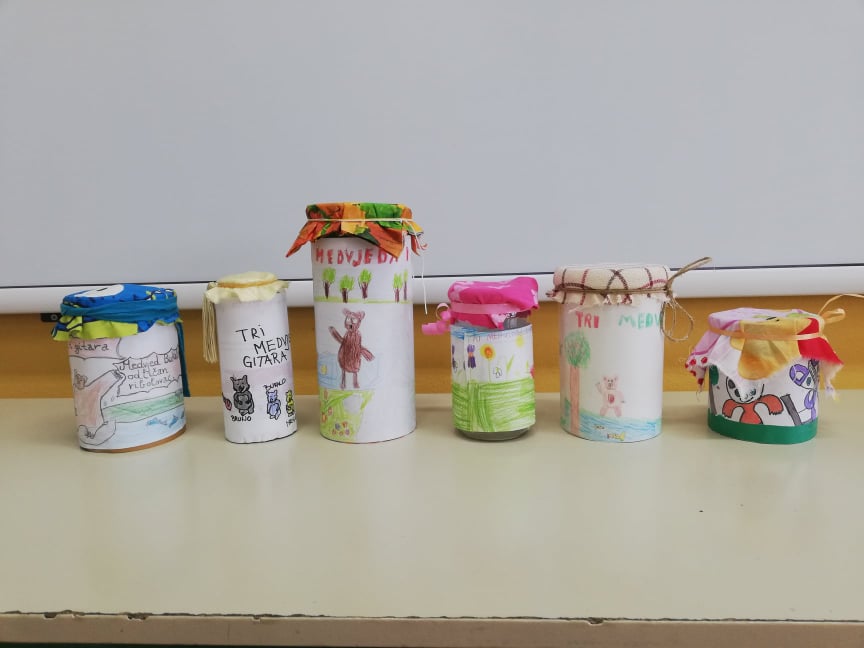 Zadatak učenika 1.c bio je osmisliti ilustraciju za svoju teglicu meda. Poticaj za ovaj zadatak bila je lektira Tri medvjeda i gitara. Svi su oni redom ispričali što prikazuju njihove sličice i tako prepričali sadržaj priče. Naučili su da je kod sviranje gitare važno imati dobro srce i da će ti prijatelji pomoći u nevolji.