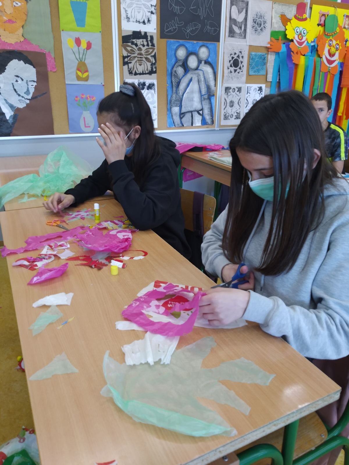 U današnje doba mnogi umjetnici osviješteni su onečišćenjem okoliša. Upravo osviještenost, empatija, znatiželja, inovativni način razmišljanja, kreativnost, želja za otkrivanjem novih materijala i tehnika odličja su umjetnika koji se koristi recikliranim materijalom. Jednako tako i naši učenici uvijek su spremni okušati se u izradi sa novim materijalima i tehnikama. Povodom DANA PLANETA ZEMLJE, učenici sedmih i osmih razreda uz pripomoć učiteljice Likovne kulture izradili su vlastiti dizajn torba i vrećica iz starih najlona. Time su recikliranom materijalu udahnuli novi život i funkciju.
