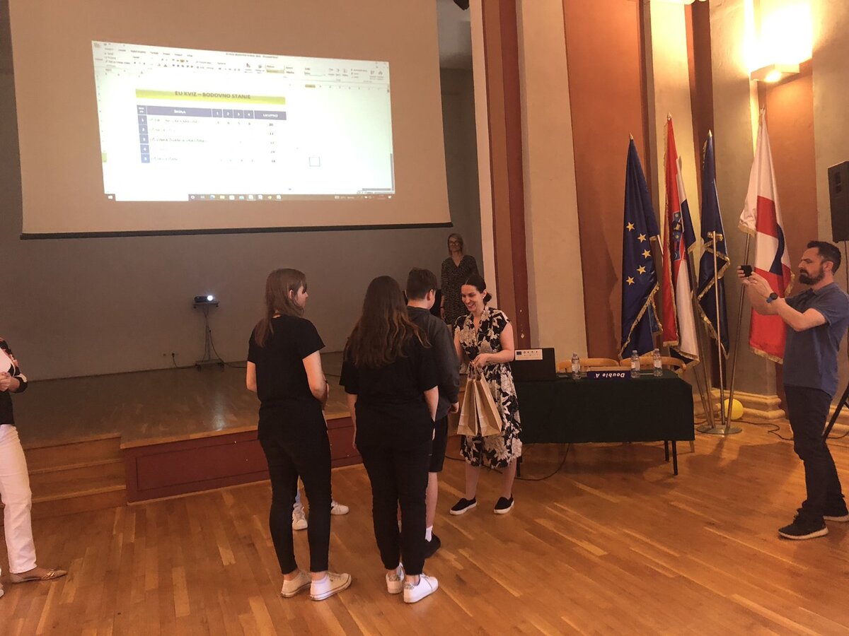 Učenici sedmih razreda - Julijan Horvat, Tin Botić, Vanessa Kovač i Mishell Požgaj pobjednici su ovogodišnjeg natjecanja EU-KVIZ 2022.