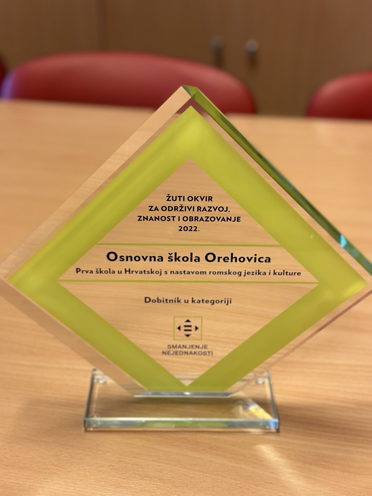 U kategoriji Smanjenje nejednakosti nagradu je dobila Osnovna škola Orehovica, škola primjer dobre prakse u radu s romskom nacionalnom manjinom i prva škola u Hrvatskoj s nastavom romskog jezika i kulture. Nagradu je primio ravnatelj OŠ Orehovica Branko Sušec, te kazao: