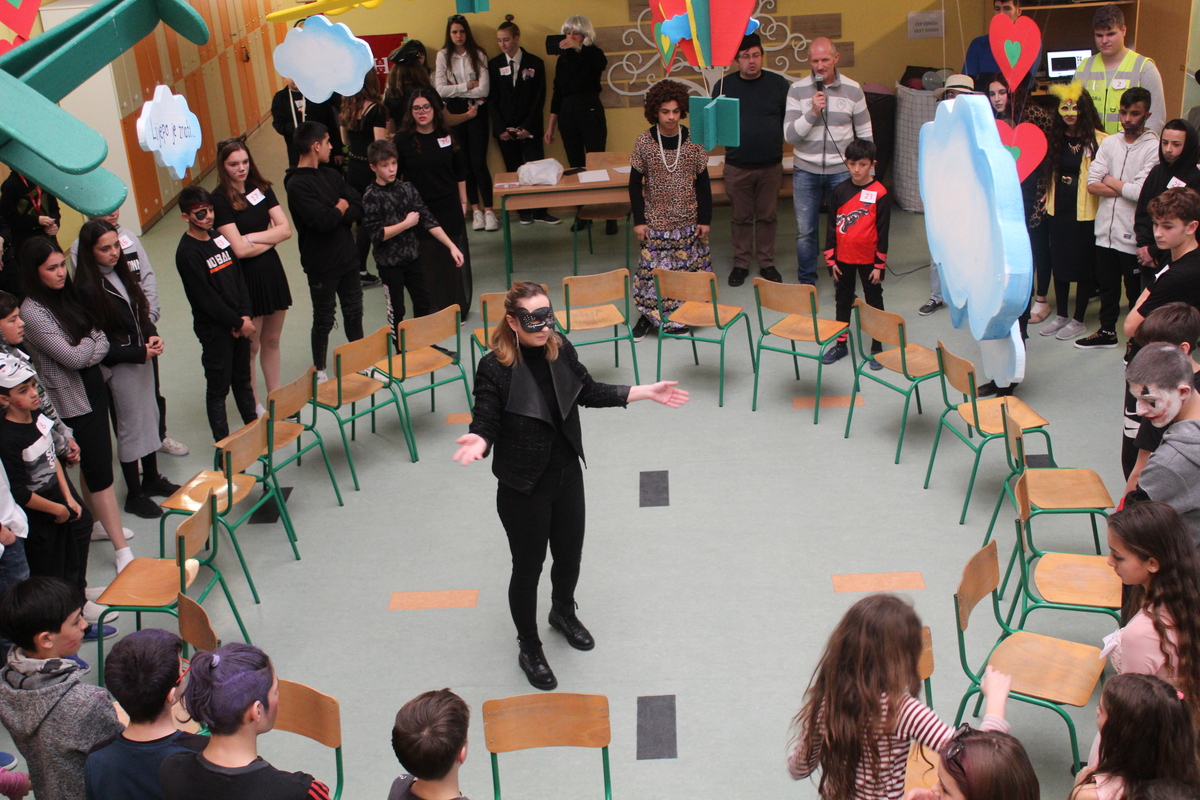 Učenici predmetne nastave marljivo su uvježbali plesne korake pod budnim okom učitelja Tihomira Grgića. Parovi koji su se prijavili trebali su otplesati svoj ples u 30 sekundi. Nakon toga stručni žiri (učitelj Grgić, učitelj Vrbanec i učiteljica Matulina Martinjak) izabrali su najbolje plesne parove. U nastavku slijede najbolji i njihovi videozapisi. Zatim je slijedila igra balonima gdje se testirala izdržljivost i strpljivost. Najbolji u tome bili su Tihana Ignac i Renato. Za kraj se čuva najbolje, pa su tako glazbene stolice izazvale najviše uzbuđenja, ali i napetosti do samoga kraja, pobjedu je ipak na kraju odnio Julijan Horvat. Kao poslastica na kraju nekoliko učenika Roma otplesali su ciganski ples.Tijekom plesova i igara, birala se najbolja pojedinačna maska, u tome je najuspješniji bio Leon Novak maskiran kao vitez.