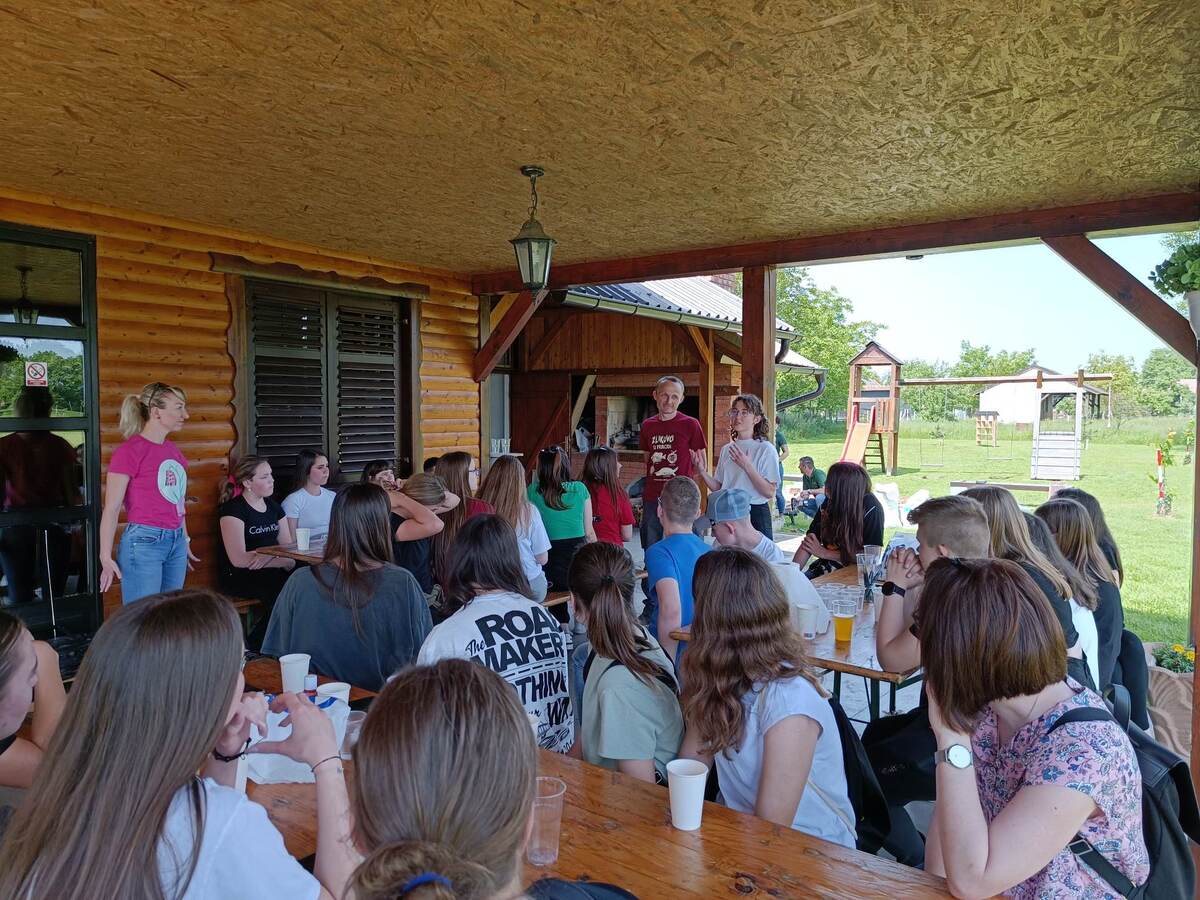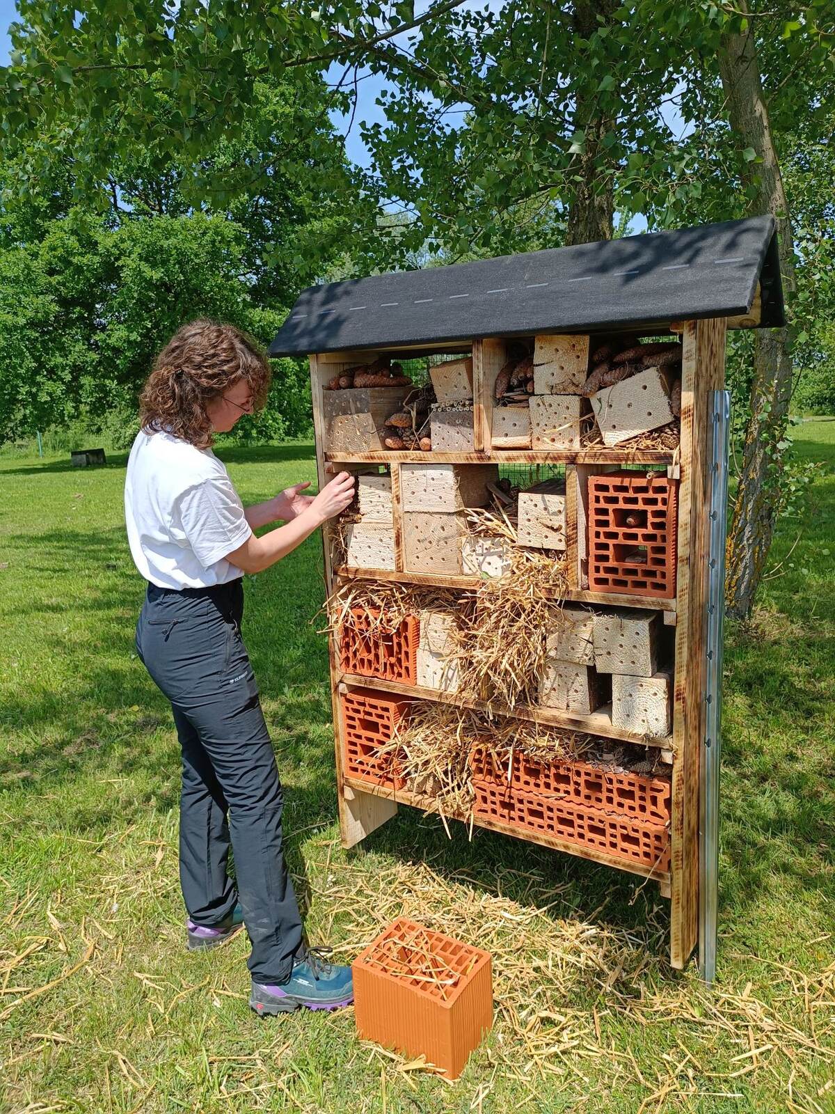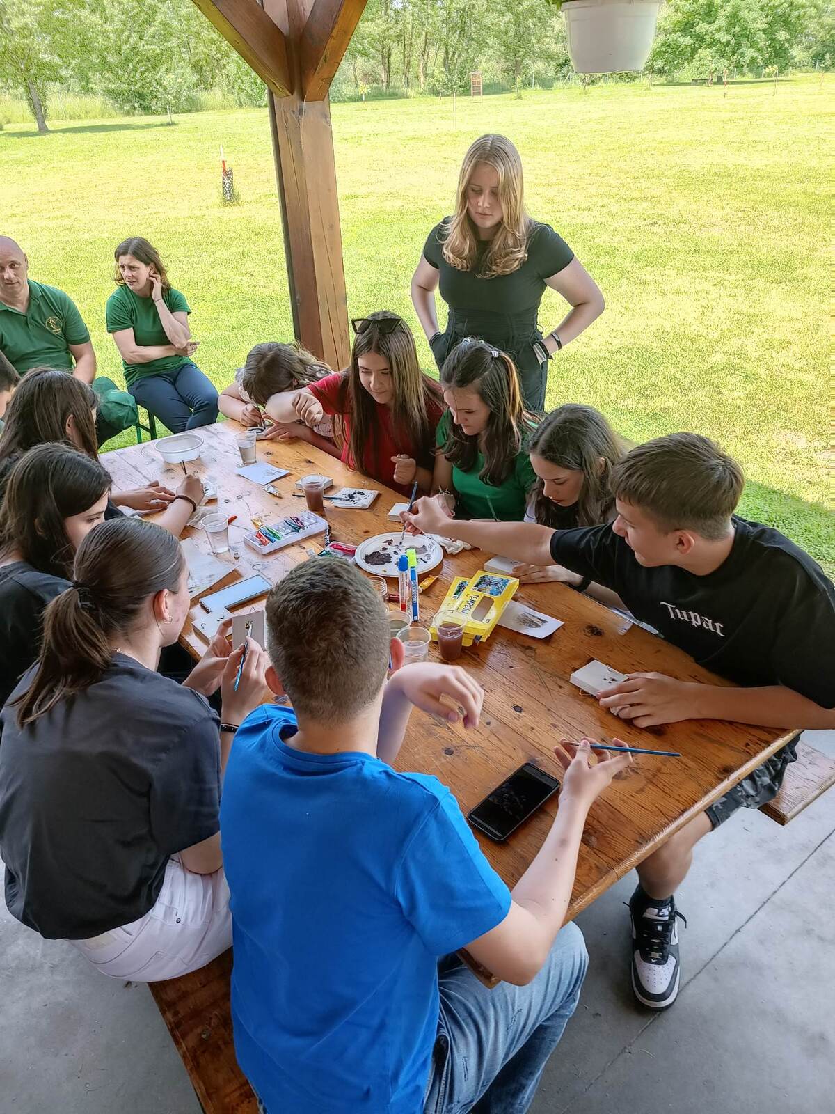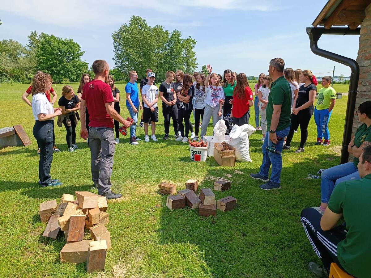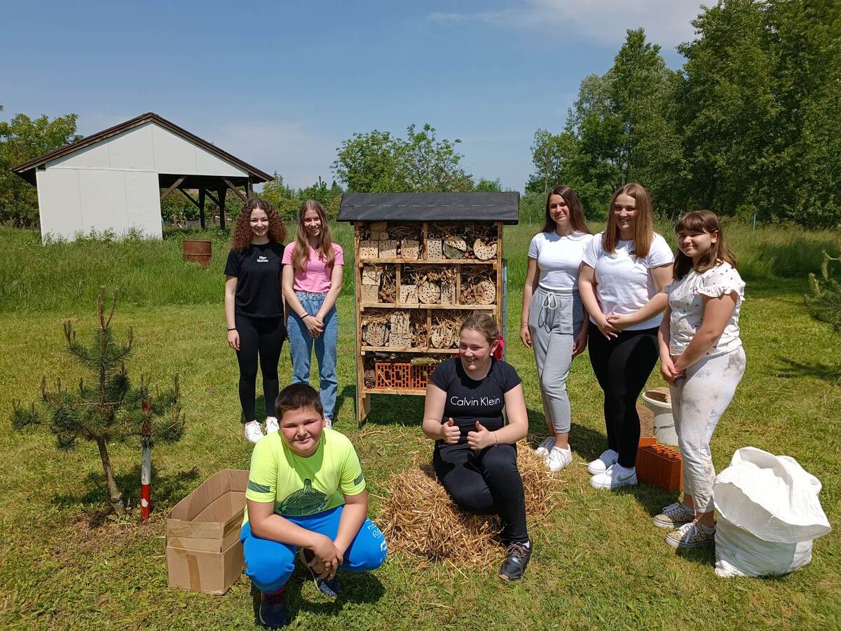 Članovi ekološke udruge EKO Prode Hodošan pod vodstvom g. Kristiana Vuka i učiteljice Kristine Vrabec uz pomoć djelatnika Centra za posjetitelje Med dvemi vodami priredili su nam prezentaciju o hotelima za kukce. Naravno, da bi bilo zanimljivo sami smo bušili rupe u drvetu, hotele punili češerima, slamom I ostalim potrebnim materijalom koji će kukcima omogućiti stvaranje nastambi. Nakon odličnog timskog rada punog veselja i zabave uslijedila je kratka pauza. Nakon što smo zajedničkim snagama izgradili čak tri hotela za kukce, uslijedila je kreativna radionica gdje su učenici dobili “hintove” na papirićima te su na temelju njih trebali pogoditi o kojoj se životnji radi te su kasnije i složili puzzle. Na puzzlama su se krile životinje koje će naseliti novootvorene hotele za kukce. Drugi dio radionice sastojao se od oslikavanja drvenih pločica koje su zapravo pripremljene vješalice za ključeve. Na poleđini drvenih vješalica koje je svatko oslikao životinjom koju je otkrio sakrivenu u puzzlama,nalazio se qr kod iza kojeg se skrivala mala uspomena na današnji dan. Čekajući da se radovi osuše, učenici su se podijelili u dva tima i zajedno na pijesku odigrali nekoliko setova odbojke ili pak razgovarali u hladovini. Uz mnogo navijanja, smijeha i radosti, bogatiji novim znanjem i novim sklopljenim prijateljstvima završili smo radionicu i sigurni smo kako ćemo takva druženja itekako ponoviti.