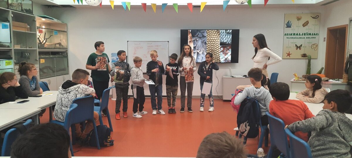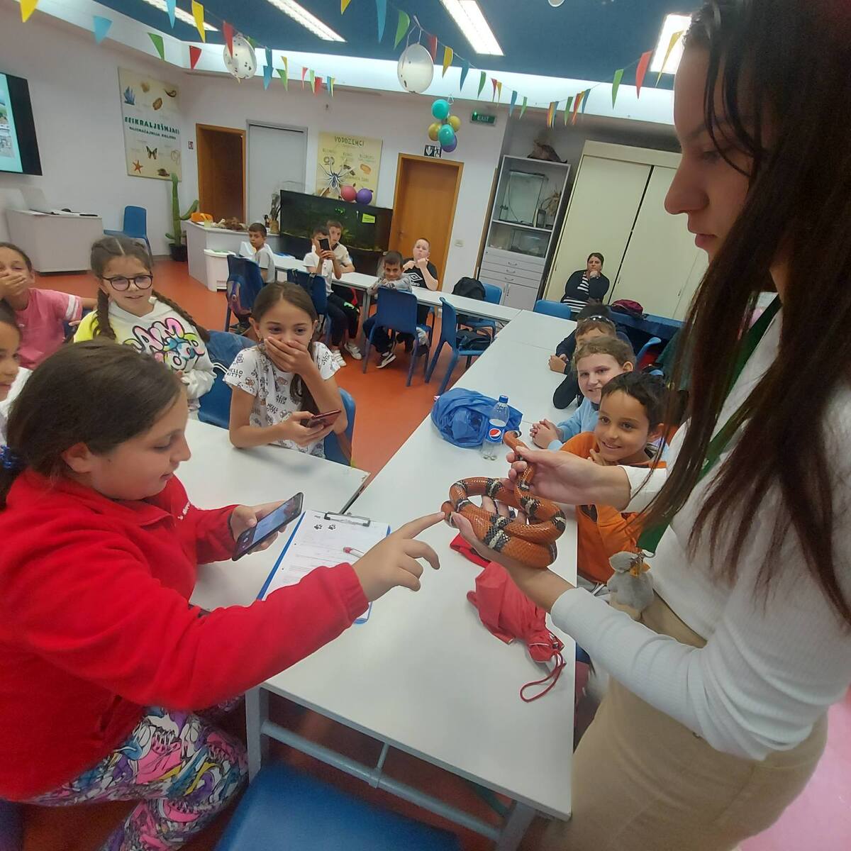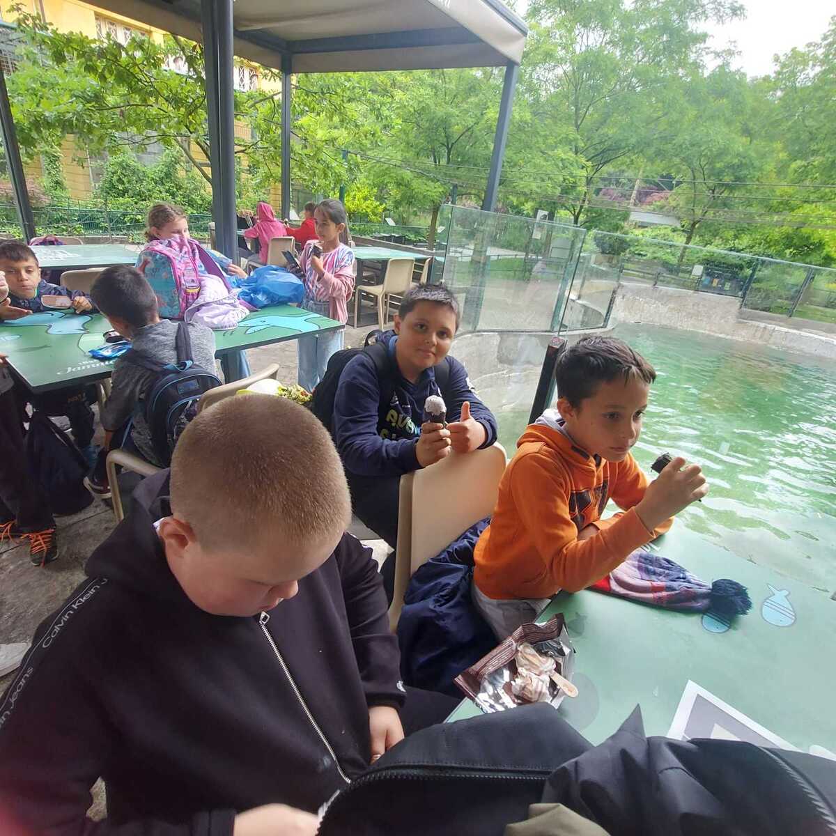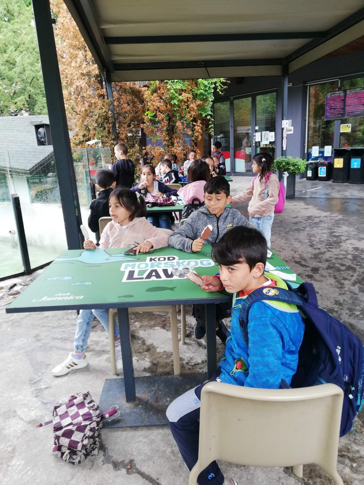 Praćeni kišom stigli smo do Maksimira. Šetnjom kroz zoološki vrt vidjeli smo mnoge životinje koje su se i same sklonile od kiše: deve, bizoni, lemuri, medvjed…. dok se crvena panda popela na vrh drveta. Razgledavajući zatvorene paviljone vidjeli smo mnoštvo kukaca i zmija, ptica i krokodile. Prisustvovali smo i edukativnoj radionici Život životinja. Prisjetili smo se i/ili naučili da se životinje dijele na domaće i divlje, da imaju tijelo prekriveno perjem, dlakama (krznom) ili ljuskama i da se različito hrane. Bili smo jako uzbuđeni kad smo mogli dotaknuti zmiju. Počastili smo se sladoledom i puni dojmova krenuli kući.