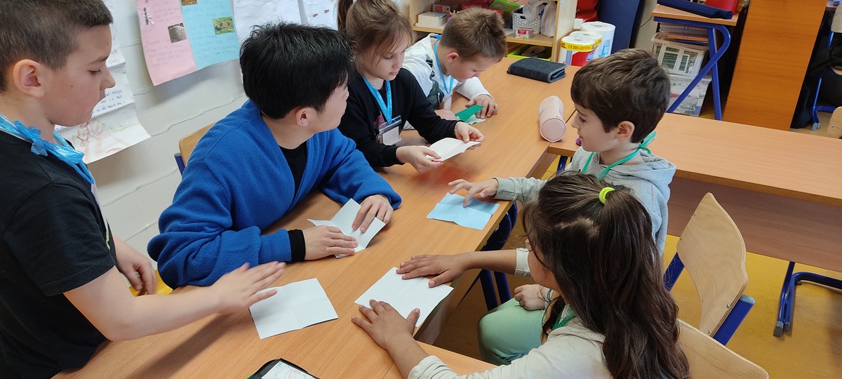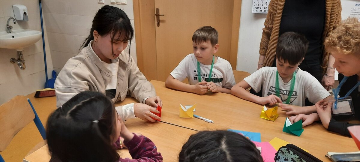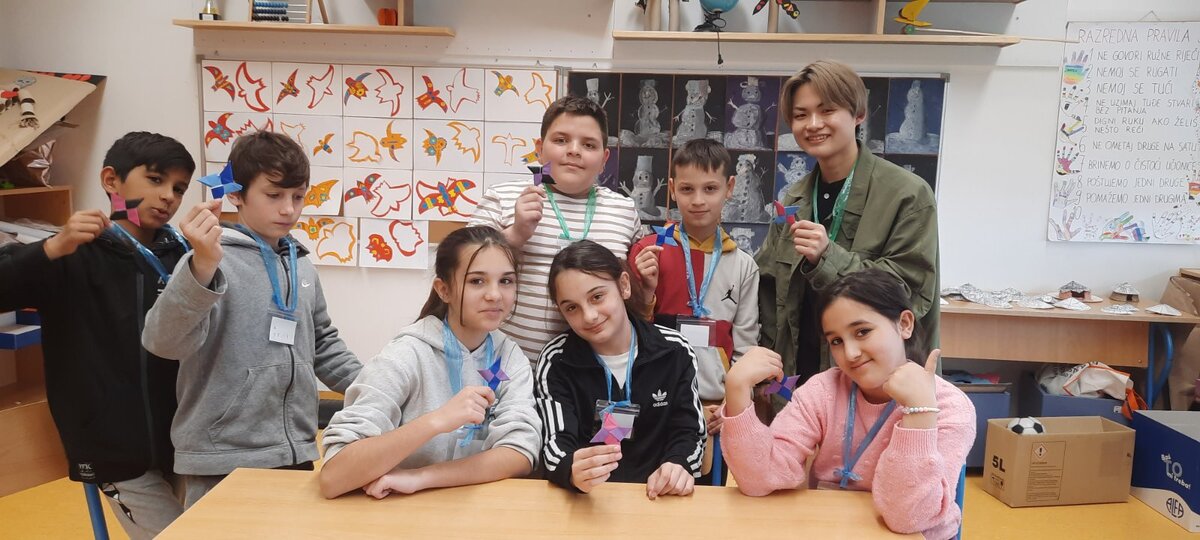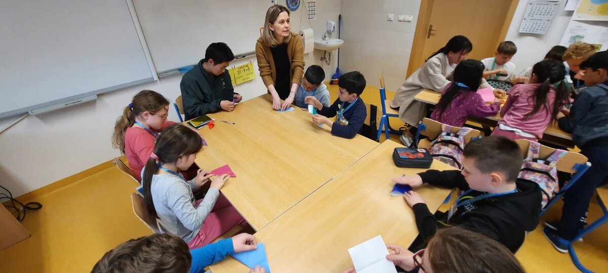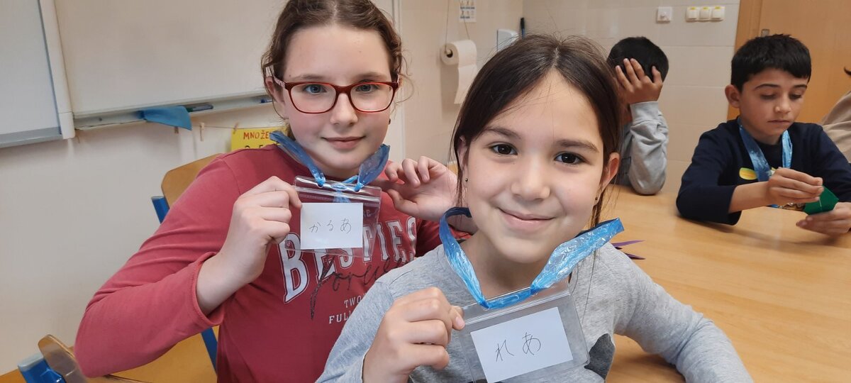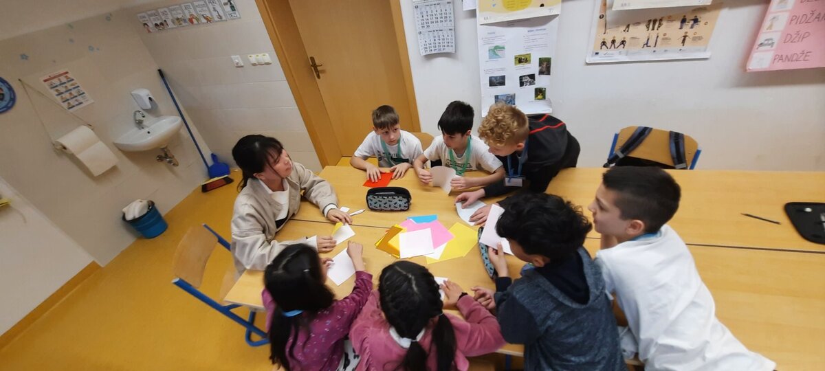 Studenti su jedan školski sat promatrali nastavu, a drugi sat su učenicima pokazali kako se pišu njihova imena na japanskom. Svaki učenik je dobio napisano svoje ime japanskim pismom. Odigrali si i igru "Uhvati zmaja za rep". Učenicima su pokazali kako se izrađuje origami, tradicionalna igra oblikovanja papira te zajedno izradili ždralove. Pokazali su im i neke japanske tradicionalne igračke.