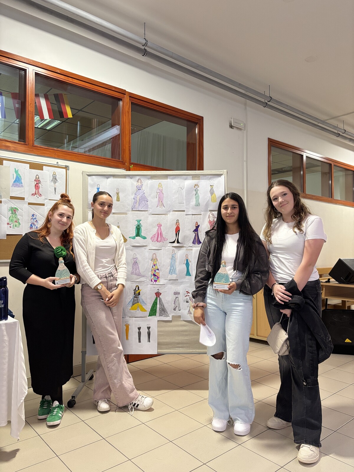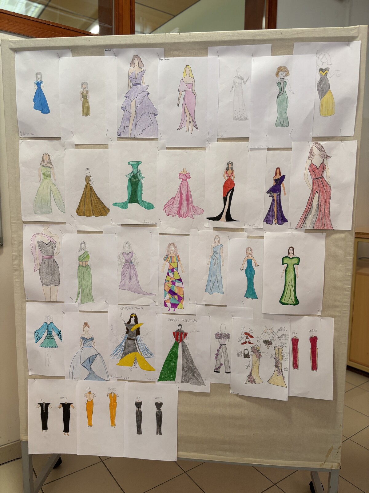 ,gdje mašta susreće stvarnost, a crtež postaje kroj koji diše na pisti. Kroz projekt učenici nisu samo razvijali svoju maštu i estetski izraz, već su zakoračili i u svijet mode, dizajna i umjetničkih zanimanja – onih što spajaju umijeće ruku i ljepotu vizije: poput krojača, modnih tehničara i dizajnera. Ponosno ističemo da su na ovom kreativnom putovanju sudjelovale i naše učenice: Lara Krčmar, Nikolina Balog i Alina Oršoš, uz podršku i vodstvo mentorice Sare Sabol, čije su oči znale prepoznati iskru umjetnosti u svakom crtežu. Od pristiglih 119 radova iz 17 škola međimurske županije, odabran je i crtež naše Nikoline Balog! A njezina skica – vizija crvene haljine – pretvorena je u stvarnost: haljinu boje vatre, izrađenu od lepršavog materijala koji pleše s korakom, govori bez riječi i nosi u sebi mladenački san o ljepoti, slobodi i izražavanju. Time su Nikolina i njezina mentorica Sara osvojile su Modnog Oskara, priznanje koje slavi kreativnost, trud i jedinstvenu umjetničku viziju!