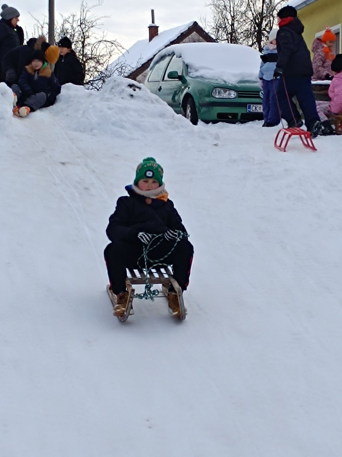 Ove zime konačno smo dočekali pravi snijeg. Odrasli mu se baš i nisu toliko veselili kao mi. Bili smo uzbuđeni i sretni kad smo čuli da nas naše učiteljice Petra i Tatjana vode na sanjkanje. Toplo obučeni u utorak, 13. siječnja krenuli smo na obližnji brežuljak. Tamo smo uživali u sanjkanju i igrama na snijegu. Zimskim radostima nisu mogle odoljeti niti naše učiteljice koje su se sanjkale zajedno s nama.