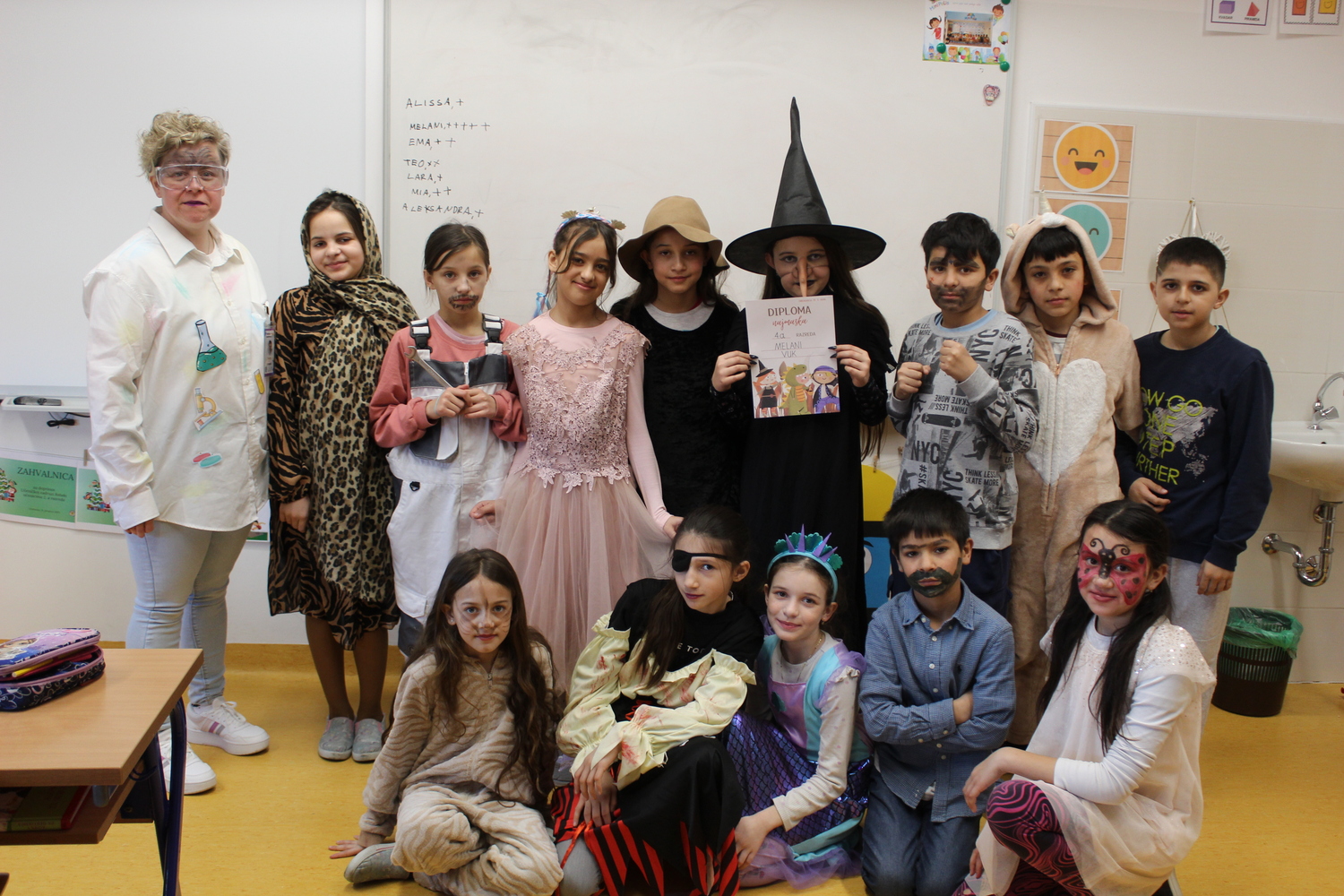 Školske su učionice ispunili šareni i zanimljivi kostimi, smijeh, ples i vesela atmosfera. Bilo je tu princeza, superheroja, klaunova, zombija, vještica, gusara, policajaca te još mnogo drugih likova koji su na jedan dan preuzeli vlast u školi. Svaki je razred birao razrednu najmasku. Sve su se maškare osladile bombonima i krafnama koje je osigurala škola.