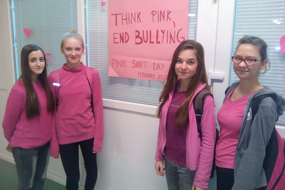 U srijedu 26. veljače, obilježili smo Dan ružičastih majica (Pink Shirt Day). Sve je počelo u Kanadi kada je učenik došao u školu u ružičastoj majici u znak potpore svojoj majci oboljeloj od raka dojke. Zbog toga je postao žrtva vršnjačkog nasilja. U znak podrške tom učeniku, dvojica dječaka iz iste škole su također odjenula ružičastu majicu, kao symbol protiv nasilja među vršnjacima. Njihov prosvjed proširio se svijetom.