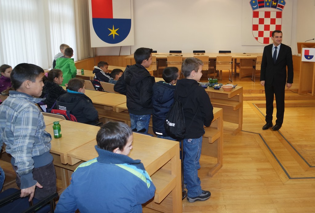 U sklopu izvanučioničke nastave "Županijsko središte" učenici trećih razreda posjetili su sjedište Međimurske županije - Čakovec. U zgradi Međimurske županije primio ih je pročelnik Ureda za društvene djelatnosti i naš bivši ravnatelj gospodin Branko Sušec i upoznao nas s ustrojem županije, djelatnostima, simoblima županije i radom u županiji. Primio nas je i župan Matija Posavec te nam ispričao što on radi. Pogostili su nas sokovima i slatkišima. Nakon toga smo prošetali gradom i razgledali kulturne i druge ustanove na putu do Policijske postaje Čakovec. Tamo su nas dočekali gospođa Irena Branović i gospodin Radovan Gačal koji su nas proveli kroz prostorije Policijske postaje i pokazali kako se uzimaju otisci prstiju, kako vježbaju te što radi interventna policija.