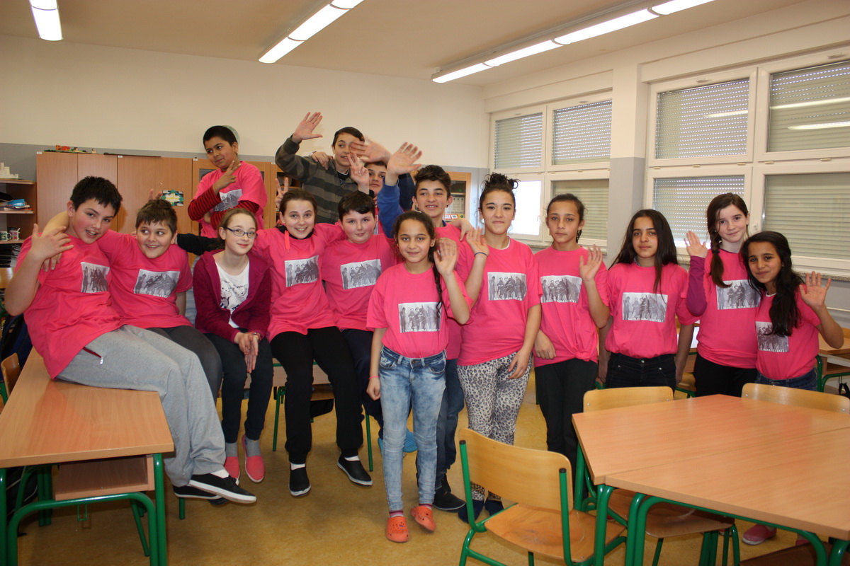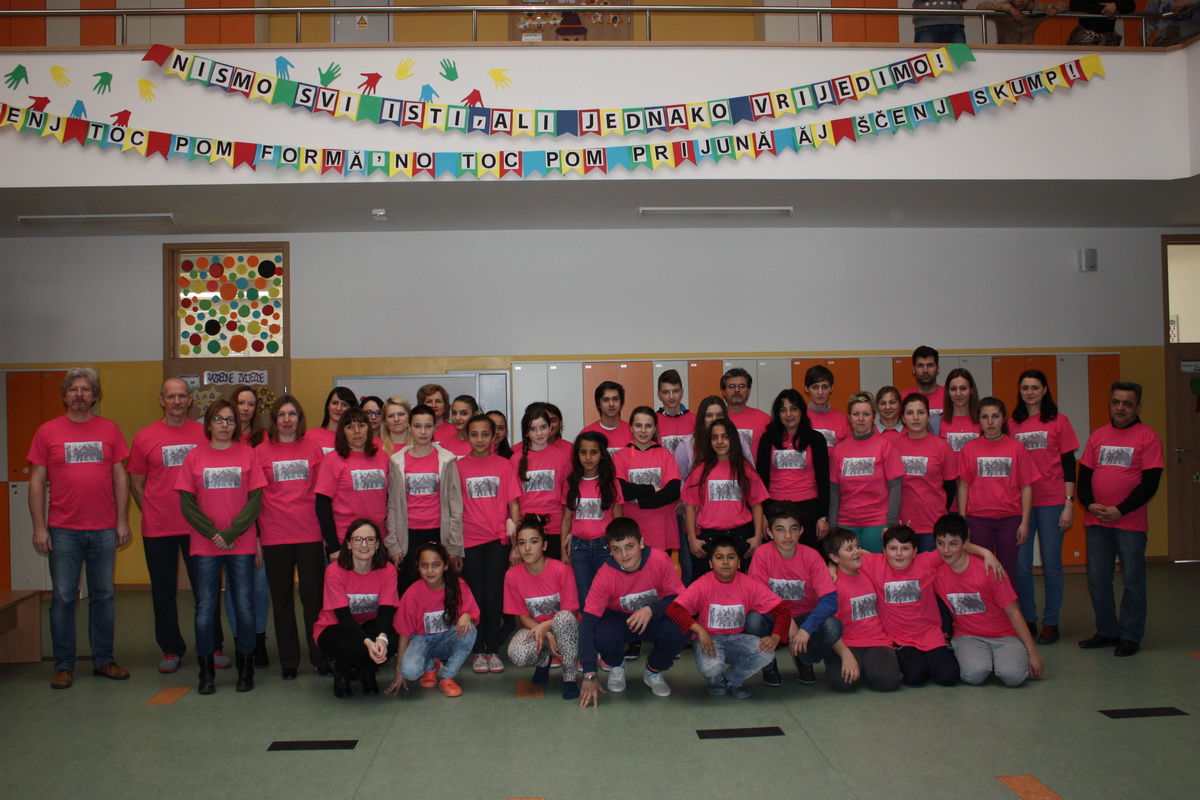 Naša se škola u tu akciju prvi put uključila 2015. godine, na poticaj učiteljice engleskog jezika Adele Tompoš. Potaknuti prošlogodišnjim dobrim iskustvima, ove su godine gotovo svi djelatnici i velik broj učenika obukli ružičaste majice s natpisom koji su osmislili učenici osmih razreda. Osim majica, školom su se mogli vidjeti razni odjevni predmeti pa čak i nokti obojani u ružičasto kojima smo svima dali do znanja da vršnjačko i bilo kakvo drugo nasilje mora prestati i da nasilju nema mjesta u našoj školi.