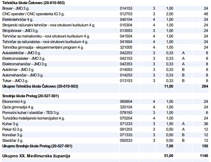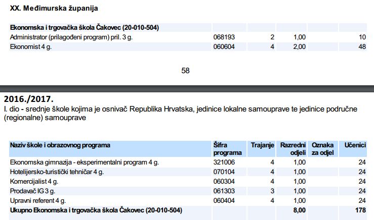 Strukturu upisa u srednje škole u Međimurske županije 2016./2017. možete pogledati u nastavku: