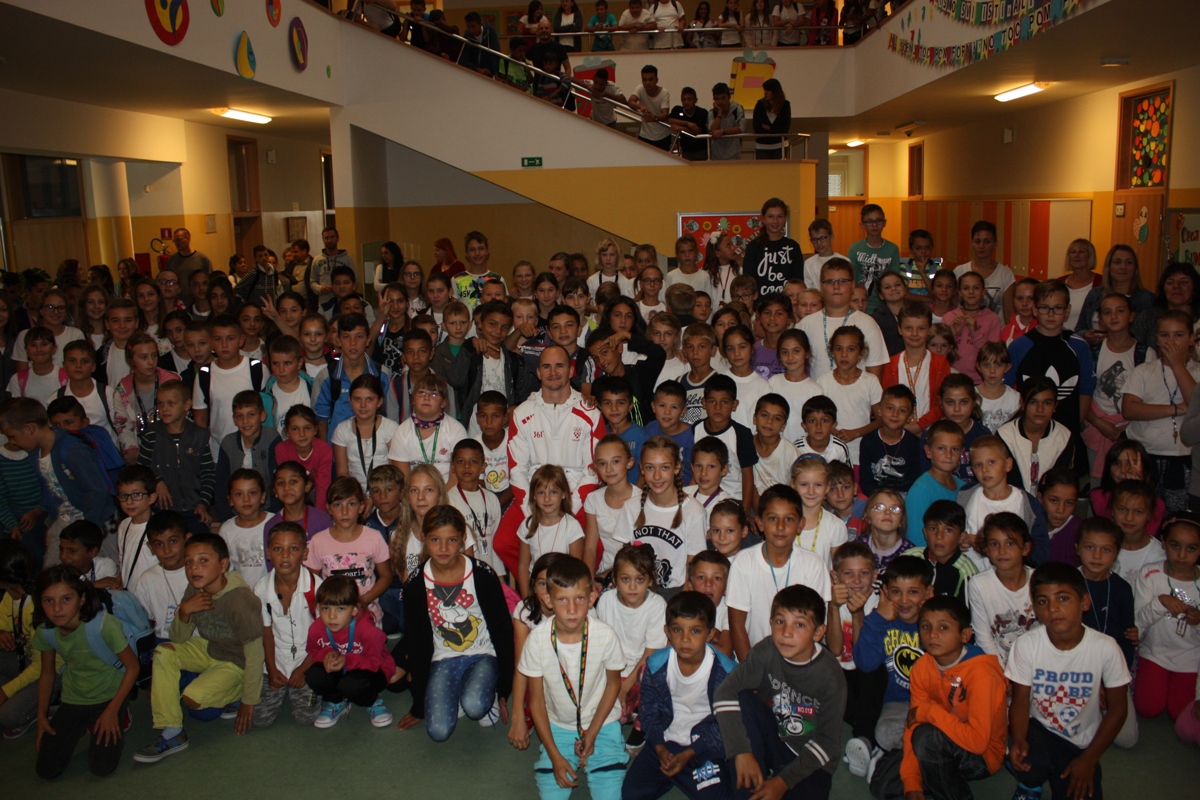 Tom prigodom naš je najbolji gimnastičar odgovarao na brojna pitanja učenika. Istovremeno im je ukazao na važnost tjelovježbe od najranije životne dobi. Govorio je i o svom životnom putu te kako je za ostvarenje snova potrebno puno rada i truda, a ponekad i odricanja. Na samom kraju druženja s učenicima, Filip je pokazao kako se izvodi salto unatrag i stoj na rukama. Djeca su bila oduševljena.