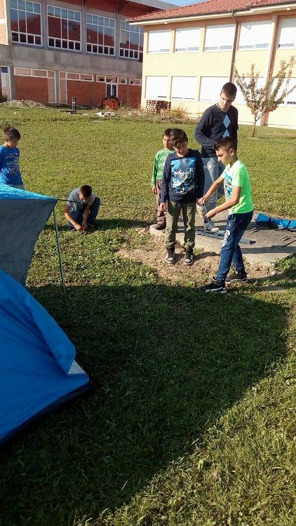 Nakon postrojavanja u školskom igralištu i utvrđivanja pravila ponašanja, izviđači su podijeljeni u grupe u kojima su se natjecali u nekoliko zanimljivih i zabavnih igara. Najprije su se okušali u prelaženju poligona zavezanih očiju sa navigatorom. Poslije kratke pauze slijedilo je natjecanje u skakanju u vreći, prenošenju blaga te trčanju zavezanih nogu u paru. Kako smo od svih tih aktivnosti i ogladnjeli, veliki su izviđači složili ložište, upalili vatru na kojoj smo svi ispekli svoj ručak – kobasice, jeger ili hrenovke. Zabavili smo se i poigrali na toboganima, ljuljačkama i ostalim igralima na igralištu dok su se neki prisjetili kako se podižu šatori. Na samom kraju uslijedilo je proglašenje pobjednika i podjela nagrada svim sudionicima.