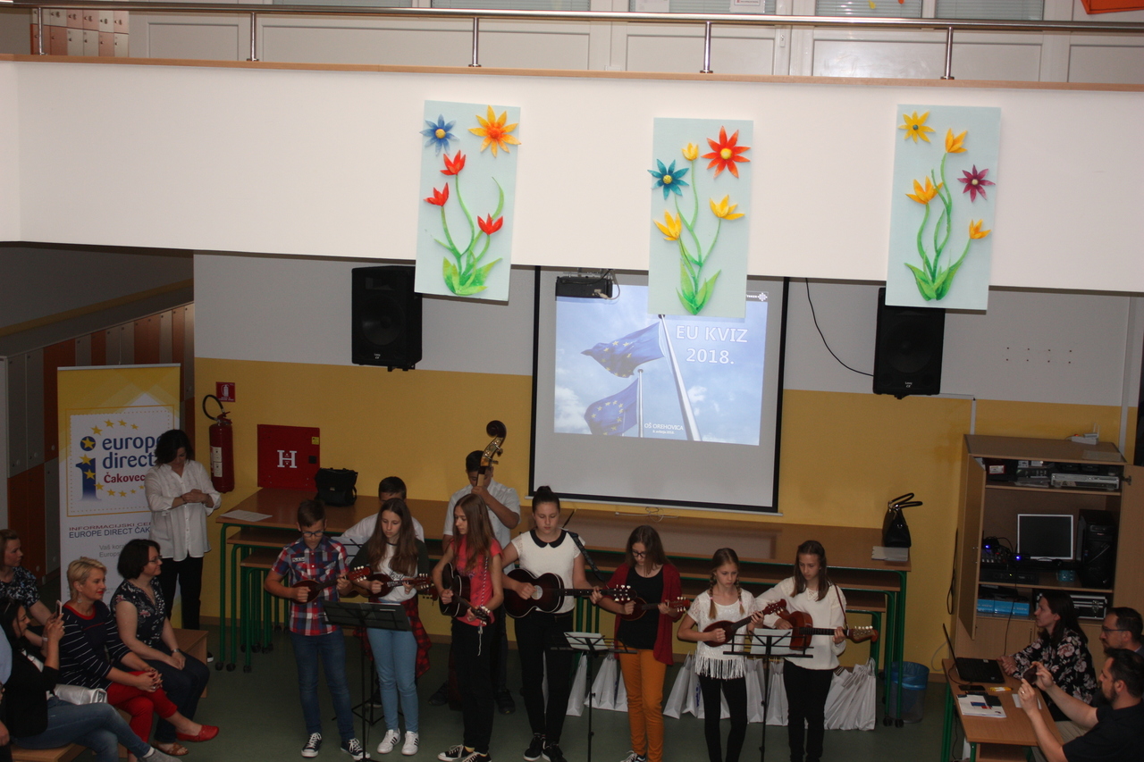 Obilježavanje Europskog tjedna pokrenuto je kako bi se obilježila 2 datuma: 5. svibnja 1949. Dan osnivanja Vijeća Europe te 9. svibnja 1950., Dan potpisivanja tzv. Schumanove deklaracije. Nakon kratkog programa u kojem je nastupilo nekoliko učenika sedmog i osmog razreda otpjevavši Bratec Martin na nekoliko stranih jezika uz pratnju Tamburaške grupe započelo je finale kviza. U ime naše škole nazočne je pozdravila Tanja Oreški.