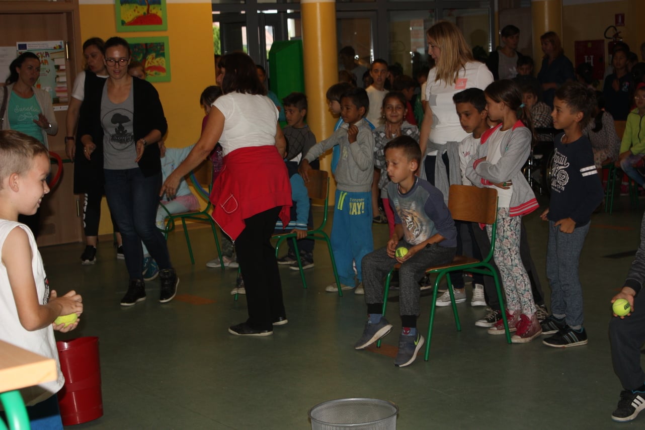 Učenici od trećeg do osmog razreda trčali su kros po razredima u muškim i ženskim skupinama. Učenicima koji su osvojili prva tri mjesta uručene su medalje, a najbolji su dobili pehare od nastavnika tjelesne kulture. Za to vrijeme su učenicima prvih i drugih razreda stigli su gosti voditelji i štićenici udruge DOSTI – Društvo osoba s tjelesnim invaliditetom Međimurske županije. Učenici su s mjesta gdje su sjedeli pokušali baciti lopticu u koš ili obruč oko žutog tuljca. Kasnije su se bili uključili i treći i četvrti razredi. Učenici četvrtog razreda su sjeli u invalidska kolica i pokušali napraviti krug oko tuljca te su vidjeli kako je njihovom razrednom prijatelju koji je u invalidskim kolicima svaki dan.