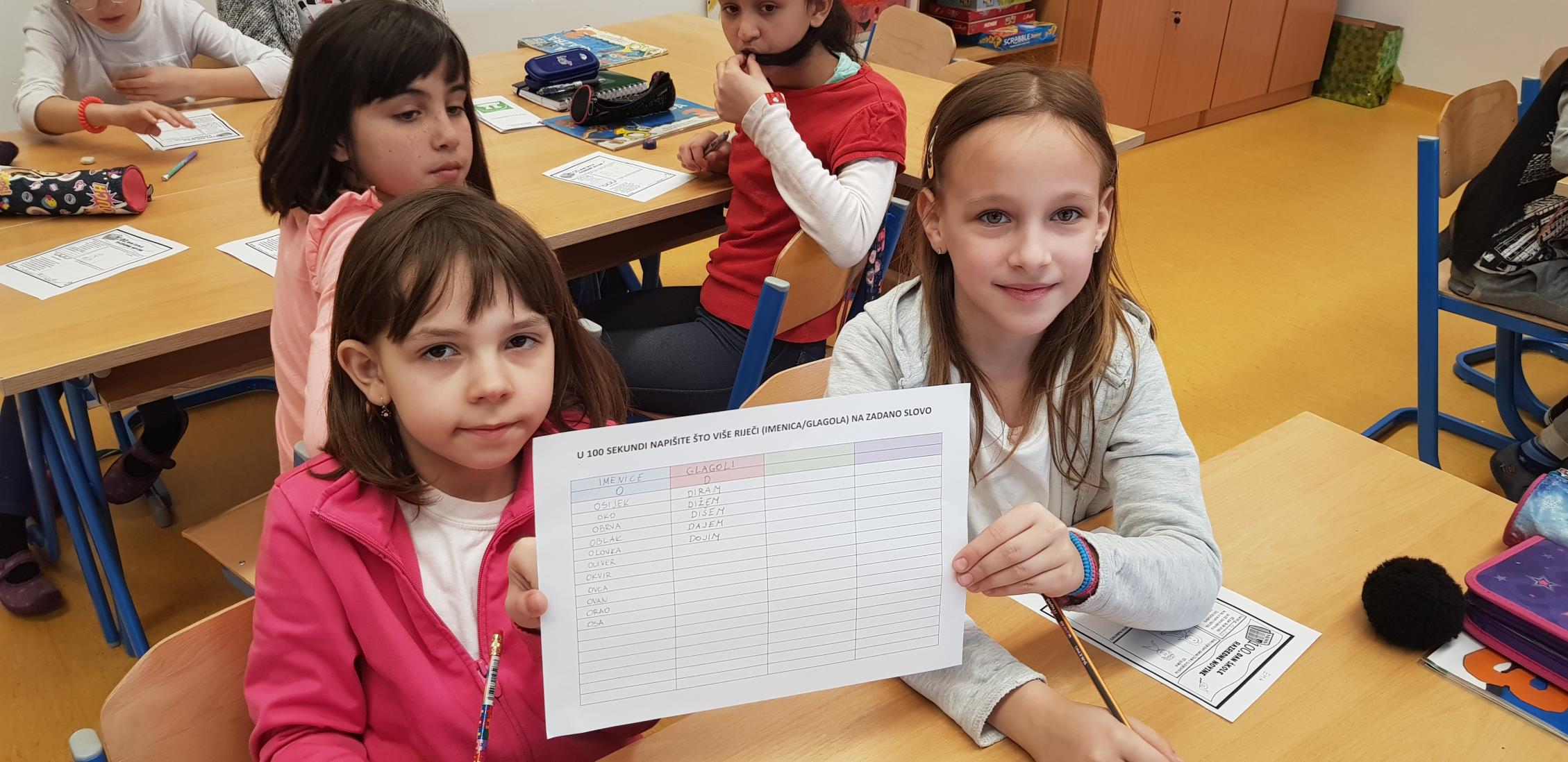 U 4.a razredu Stoti dan škole obilježen je nizom zanimljivih aktivnosti. Pisali smo sto riječi koje u sebi sadrže riječ STO, u sto riječi ponavljali imenice, glagole i pridjeve. Množili smo brojeve brojem 100 i višekratnicima broje 100, šutjeli smo 100 sekundi, pisali što bismo učinili sa 100 kuna, svojim tijelima napisali broj 100, deset vježbi ponavljali deset puta te brojili 100 koraka u dvorani. (učiteljica Đurđica Lukač)