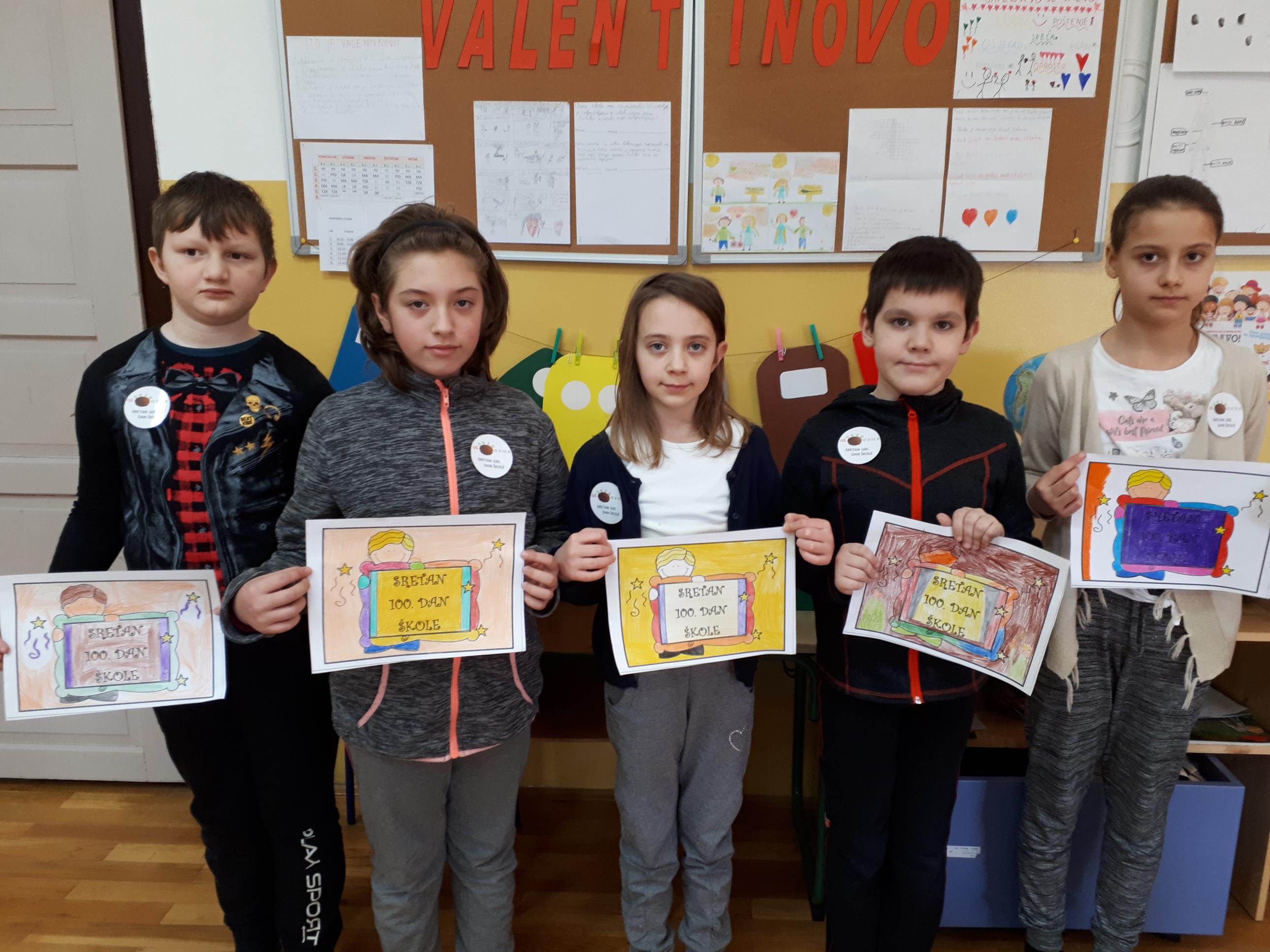 Radni je dan prošao u znaku broja 100. Brojili su i računali do 100, čitali i prebrojavali riječi do 100, pisali rečenice, a zanimljiv je bio i kviz u informatičkoj učionici. Svi su zavrijedili čestitke, a bilo je i slatkiša. Jedni su drugima poželjeli još lijepih i zanimljivih dana u školi. Dana u kojima će učiti, družiti se. I dana koje će pamtiti. Rado ih se sjećati na okupljanjima uz brojeve 5, 10, 15… (učiteljica Rosanda Vrus)