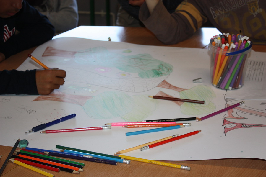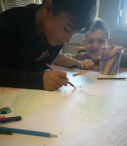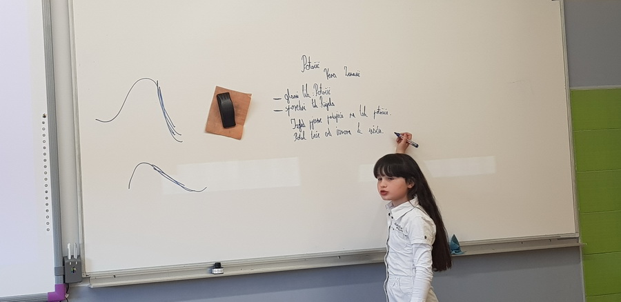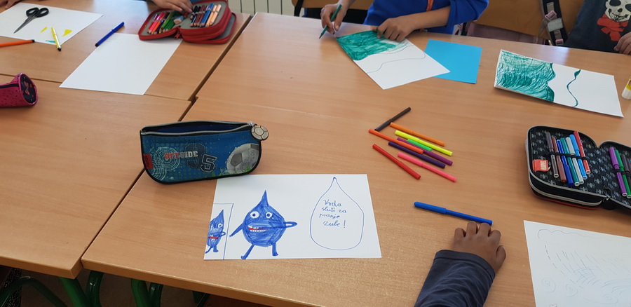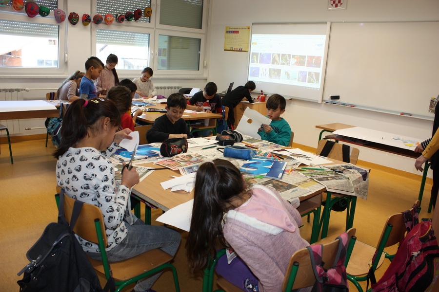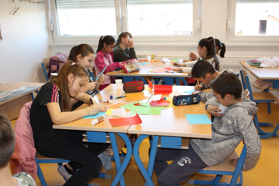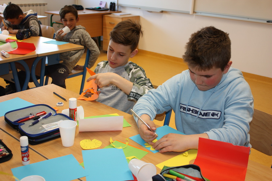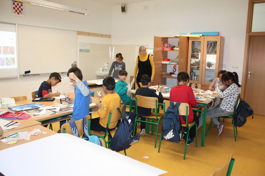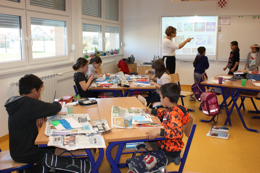 Kad bi drvo moglo govoriti, što bi poručilo ljudima o vodi i prirodi? Učenici 7.b razreda trebali su zamisliti da su oni to drvo. Svaki član skupine zapisao je jednu poruku ili izreku o važnosti zaštite voda i prirode. Poruke su bile pisane hrvatskim i njemačkim jezikom. Učenici su prepisali poruke na papirić, ukrasili ih i zalijepili na drvo. Kako bi se učenicima usadila svijest o odvajanju otpada, tijekom druge radionice učenici su izrađivali i ukrašavali kontejnere za pojedinu vrstu otpada i na njemačkom jeziku ispisivali u odgovarajući kontejner izraze za otpad. U radionice su bili uključeni učenici 7.b razreda, a vodile su ih učiteljice Ivanka Novak i Jasminka Dodlek.