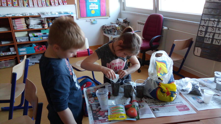 Učenici prvih razreda su cijeli tjedan provodili istraživačke aktivnosti i proučavali vjetar, zrak, Sunce, zemlju i vodu. U ponedjeljak su imali vjetrodan i izrađivali vjetrenjače. U utorak su imali suncodan i izrađivali spektroskop. U srijedu su imali zrakodan i proučavali i izgrađivali oblake. U četvrtak su proučavali zemlju i sadili sjemenke cvijeća, začinskog bilja i povrća. Istraživanja su završili u petak na Dan voda kada su proučavali nastajanje kiše i pokusom pomoću pjene za brijanje i prehrambenih boja proučavali kako kiša nastaje. Provodili smo i glazbene aktivnosti vezane uz kišu te slikali obitelj kapljica. Naučili su puno novog naučili i uz to se zabavljali.