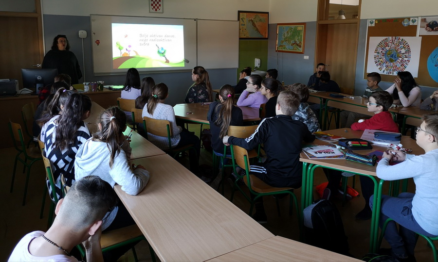 Učenici 5.b i 7.a razreda sudjelovali su na radionicama pod nazivom "Misli globalno - djeluj lokalno" i "Bolje aktivan danas nego radioaktivan sutra" na kojima su u osvijestili (ili se podsjetili) ekoloških problema suvremenog svijeta, te uzroke i posljedice njihova nastanka. Nakon toga su dobili upute o izradi samostalnog projekta. U grupama su trebali detektirati ekološke probleme u svojoj sredini, odabrati jedan na koji mogu djelovati (obzirom na dob) i prema uputama izraditi projekt kojim bi utjecali na smanjenje ili uklanjanje tog problema. Na kraju su prezentirali po grupama svoje projekte, ostali učenici i učiteljice su im postavljali pitanja i ocijenili njihove prezentacije. Bodovi su se dodjeljivali u tri kategorije: plakat, prezentacija, primjenjivost/ korist.