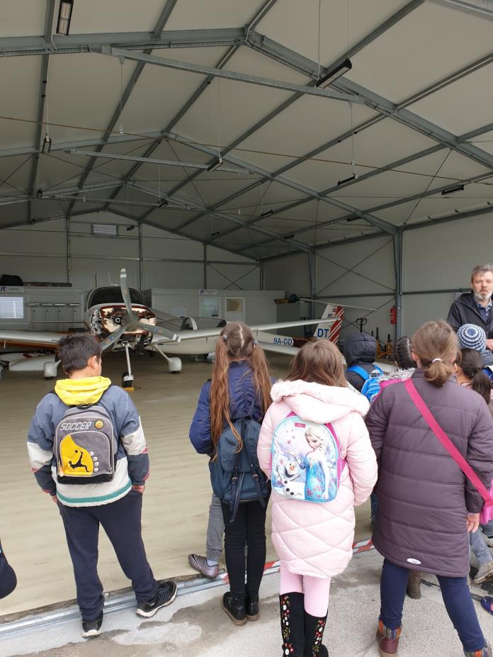 Uzbudljiv dan završili smo u Zračnoj luci Pribislavec gdje smo razgledali letjelice, pistu, hangar i radionicu. Učenici su postavljali brojna pitanja i pokazali interes za let zrakoplovom.
