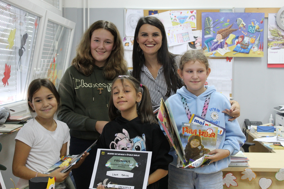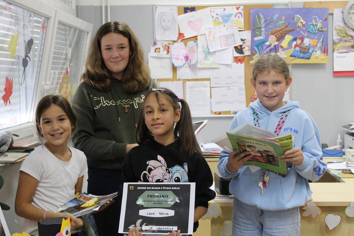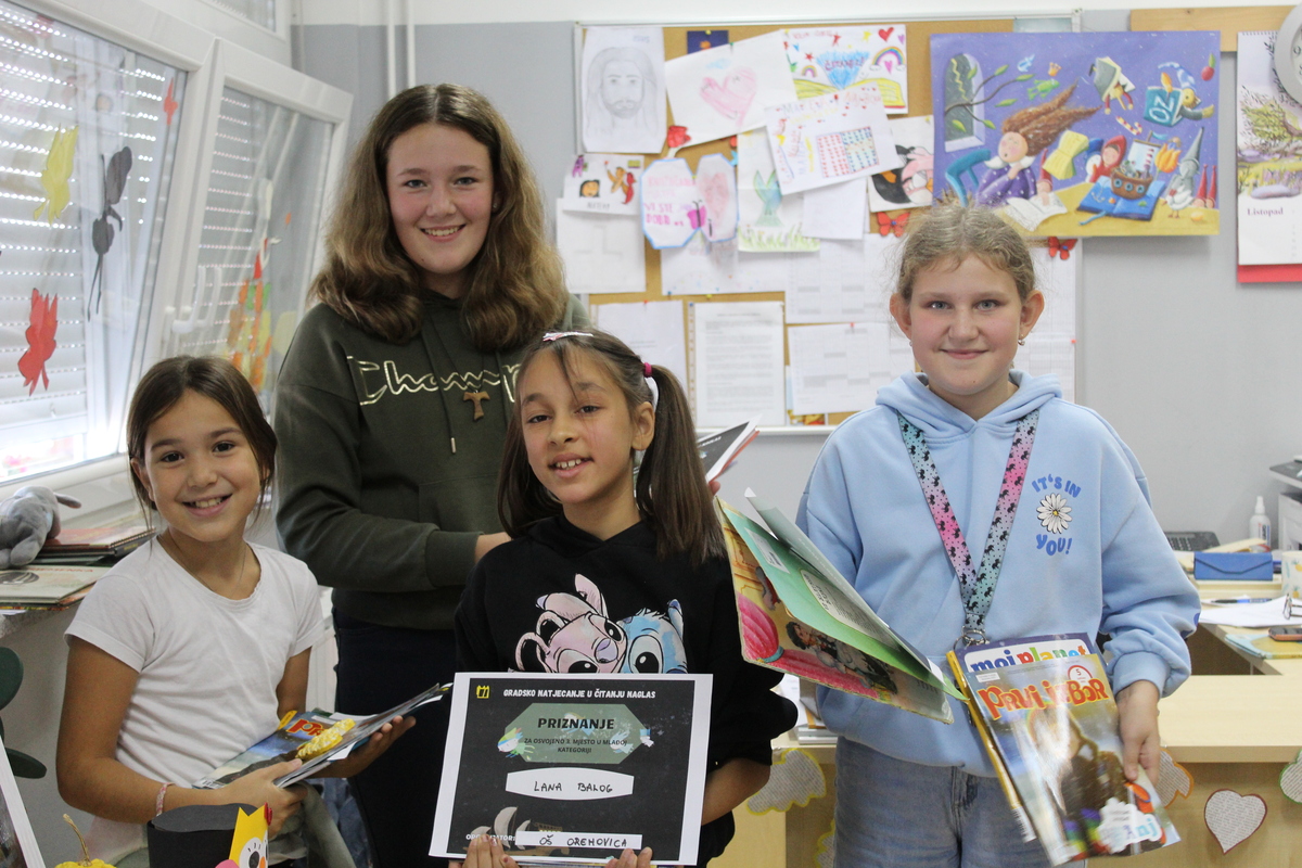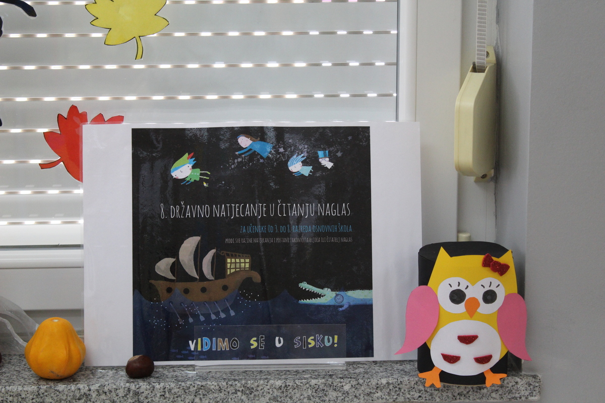 Školska razina Natjecanja u čitanju naglas održana je 16. listopada u školskoj knjižnici. Ukupno se natjecalo 11 učenika, njih 10 u mlađoj kategoriji (3.-5. razred) i 1 učenica u starijoj kategoriji (6.-8 razred). Natjecatelji su predstavili knjigu po vlastitom izboru primjerenu svojem uzrastu. U prve dvije minute usmeno su obrazložili svoj odabir, a ostale tri bile su predviđene za izražajno čitanje. U nastupu se ocjenjivala kreativnost uvodnog dijela, jasnoća i razgovjetnost čitanja, izražajnost u nastupu, primjerenost teksta uzrastu i sveukupni dojam. Učenici su još jednom potvrdili koliko je važno čitati iz užitka i koliko je važno drugima dati do znanja koliko je čitanje ZAKON te u koje nas sve nove svjetove može odvesti.