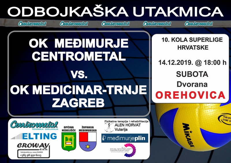U subotu 21. 12. 2019. godine će se u sportskoj dvorani OŠ Orehovica odigrati utakmica prve hrvatske odbojkaške lige između OK Međimurje Centrometal i OK Medicinar iz Zagreba.