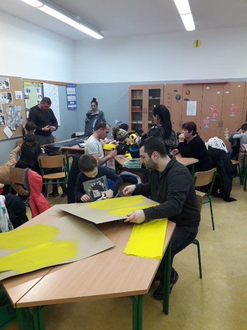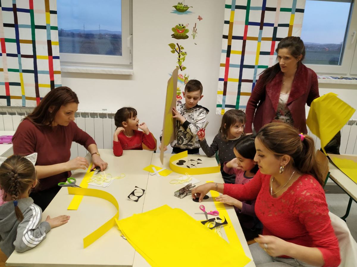 U srijedu, 19. veljače 2020. godine, održana je radionica izrade maske. Radionici su prisustvovali roditelji i djeca predškolskih skupina "Cvjetići", "Medenjaci" i "Tigrići". Crne vreće, žute trake, hamer papir, krep papir, malo boje i malo kartona bili su potrebni da nastanu maske pčelica. Kako nam je bilo i što smo napravili, pogledajte na fotografijama.