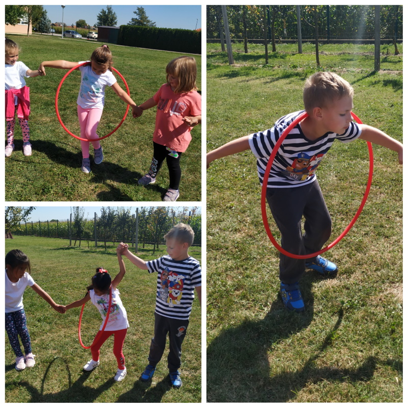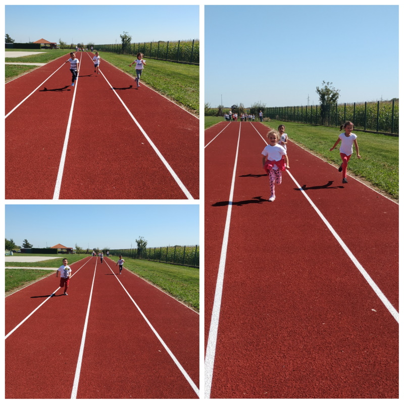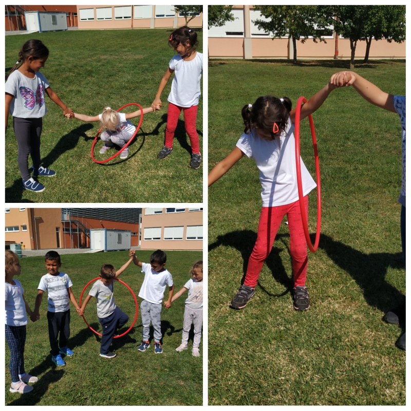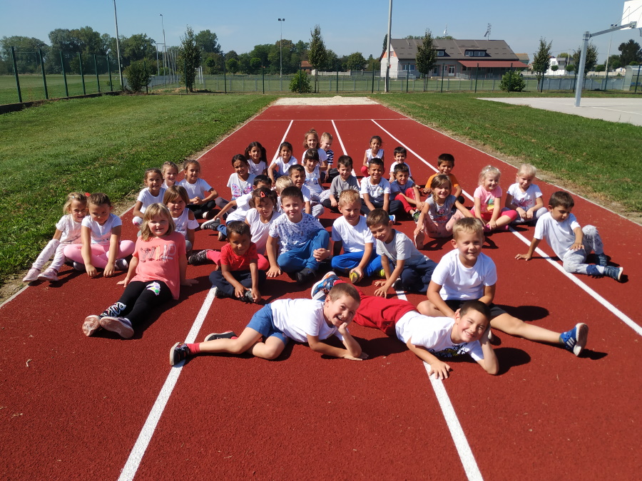 Na školskom igralištu provodile su se različite aktivnosti za djecu: zajedničko razgibavanje s odgojiteljicama, natjecanje u trčanju na atletskoj stazi te igra privlačenja kroz kolutove. Bilo je veselo i razigrano što možete vidjeti na fotografijama.