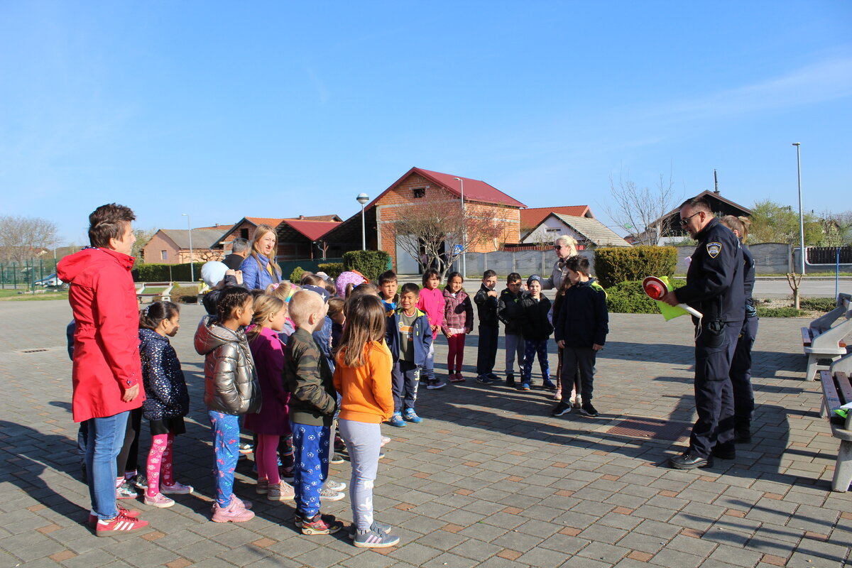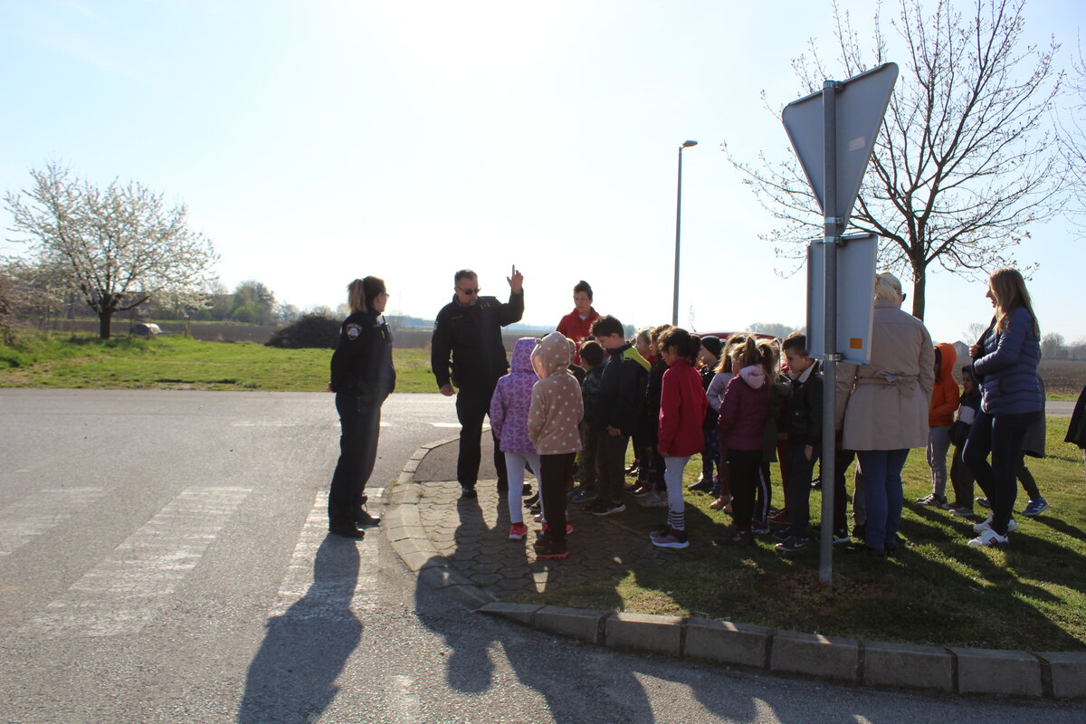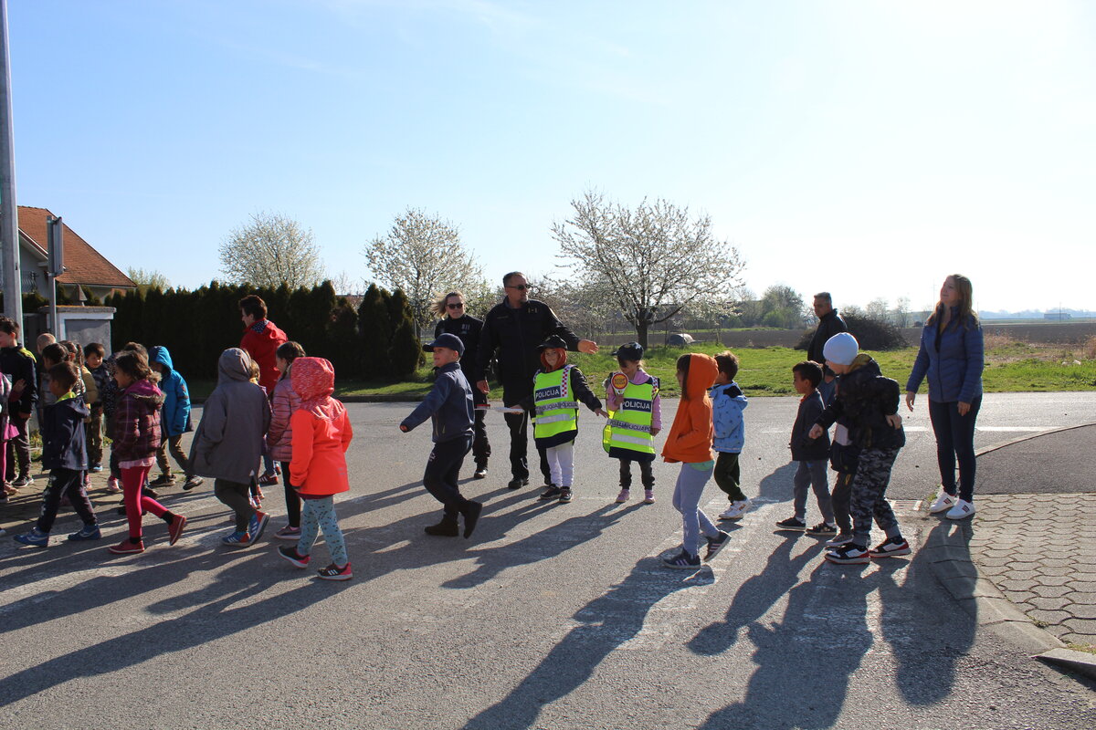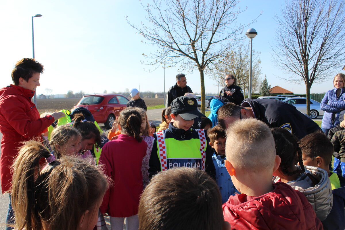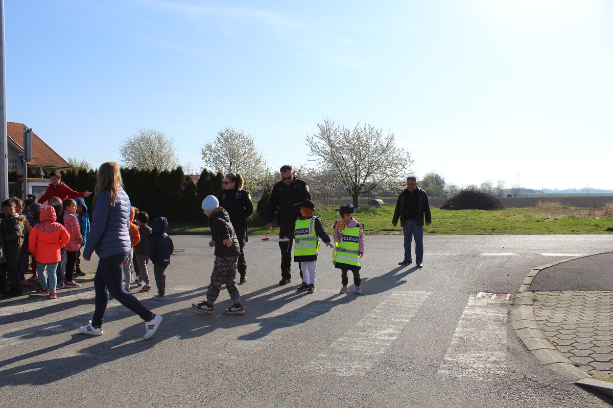 Policajci su predškolcima pokazali pravilan način kretanja prometnicama i ukazali na opasnosti koje im prijete na cesti, a sve kako bi se što bolje pripremili za sigurno sudjelovanje u prometu kada samostalno krenu u školu.